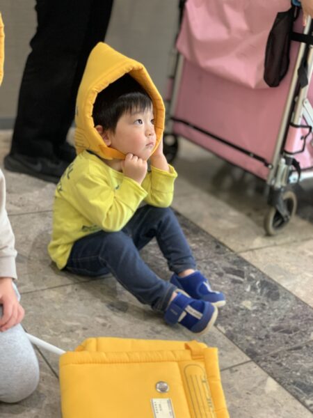 以前は嫌がっていた防災頭巾をかぶるのも、今ではとっても上手になりましたね!