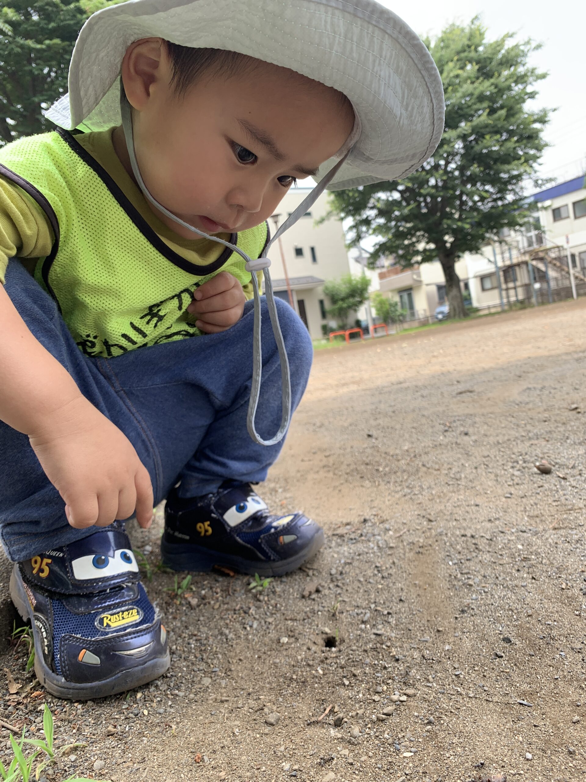 地面をじーっと見つめていた子が