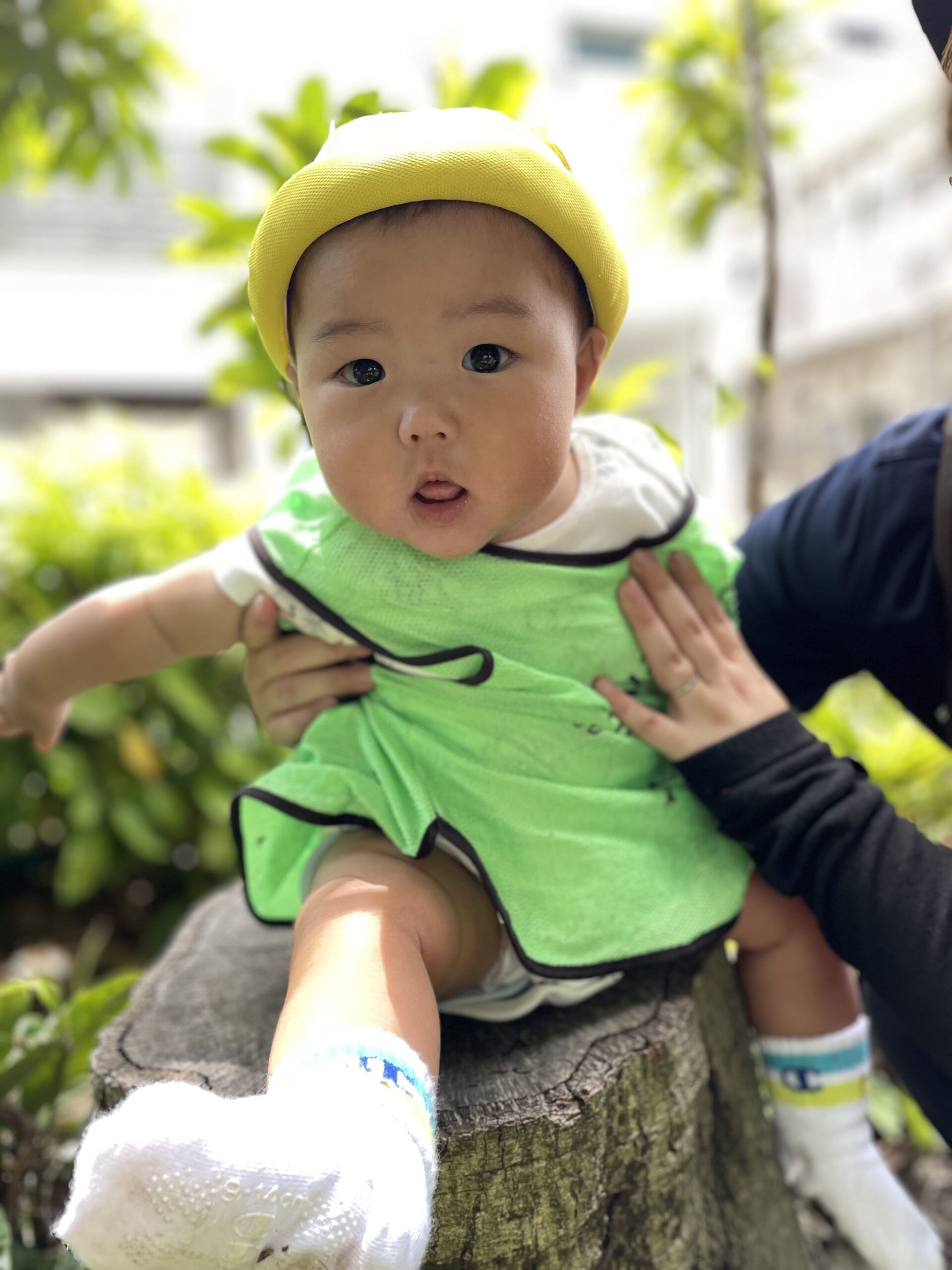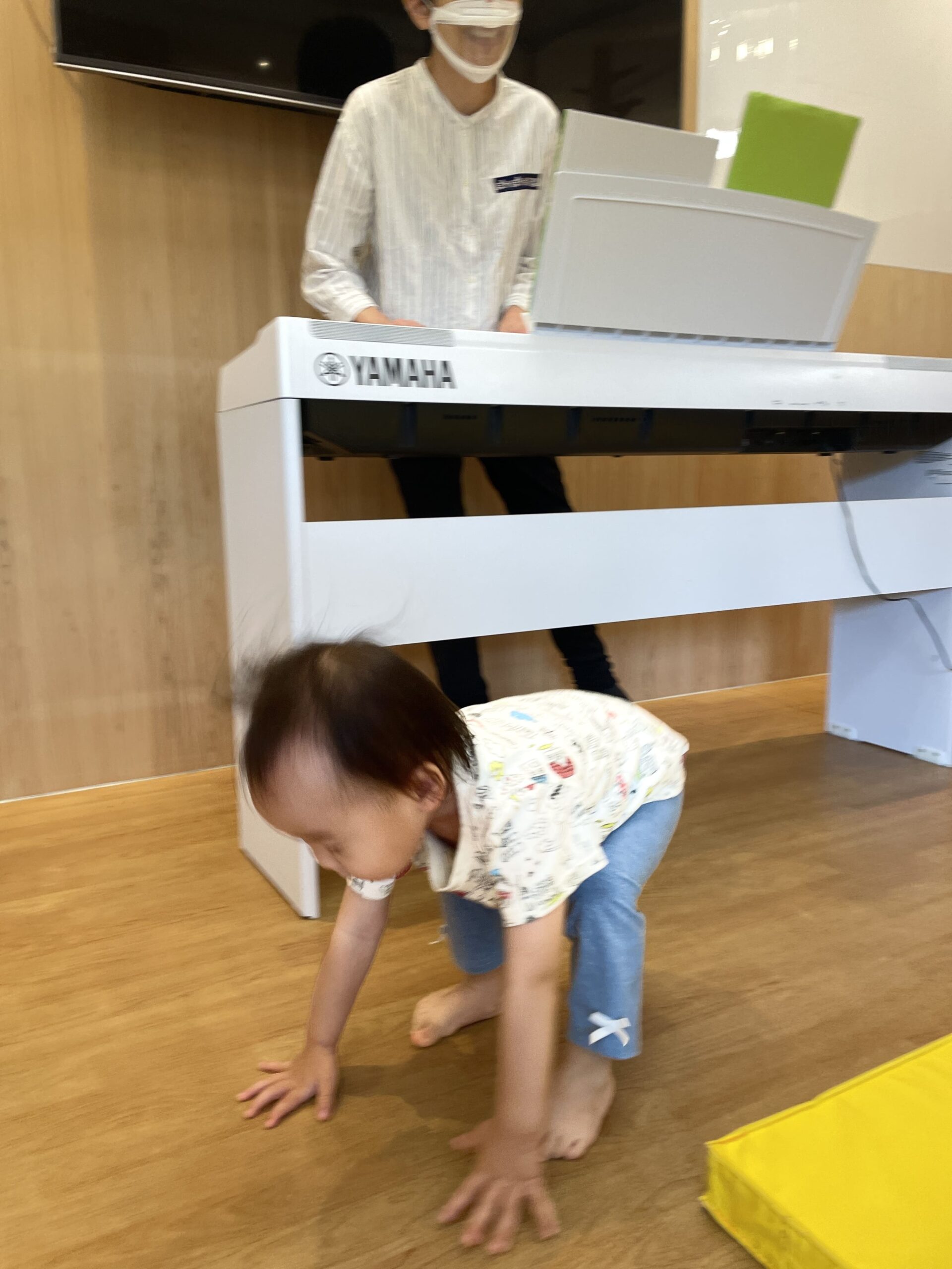「カエルさんみたいにジャンプできるかな?」と先生が聞くと、「ぴょんぴょん!」とうれしそうに真似をして遊んでくれました。