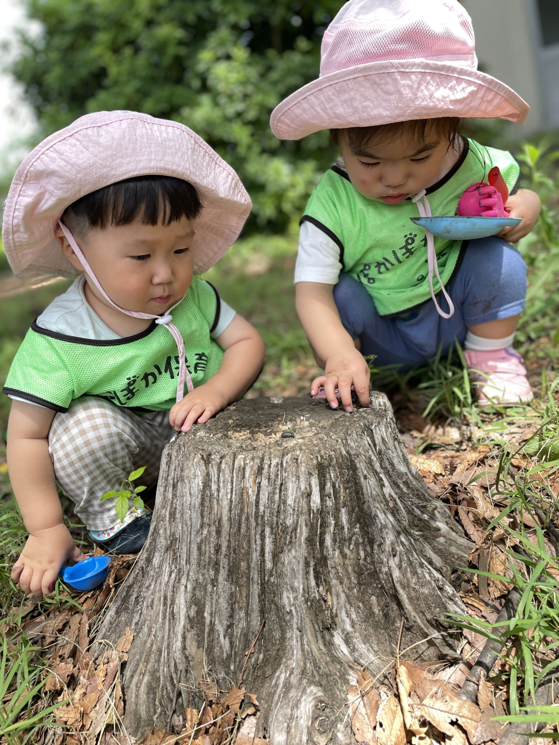 虫を見つけると「みてみて!」「あそこにもいたよ!」と友達同士で観察を始めました。