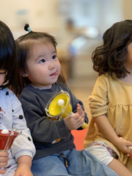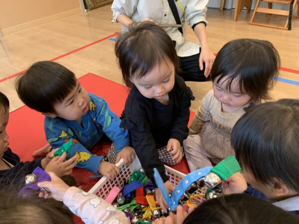お友達と一緒にタイミングを合わせての音楽作り!集中力や聞く力を育んでいきます。