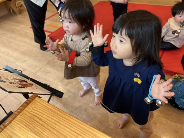 そしてジングルベルの歌に合わせて、ベルのリズム演奏に挑戦しました!