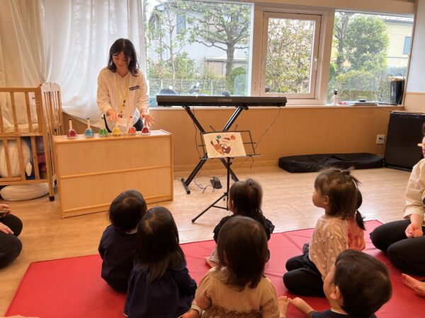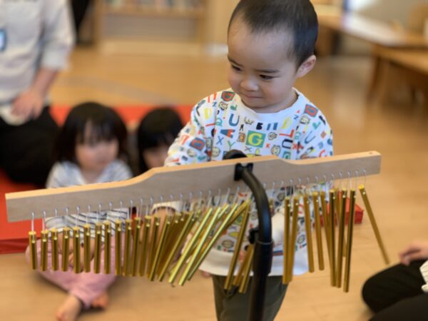 お友達と一緒にタイミングを合わせての音楽作り!集中力や聞く力を育んでいきます。
