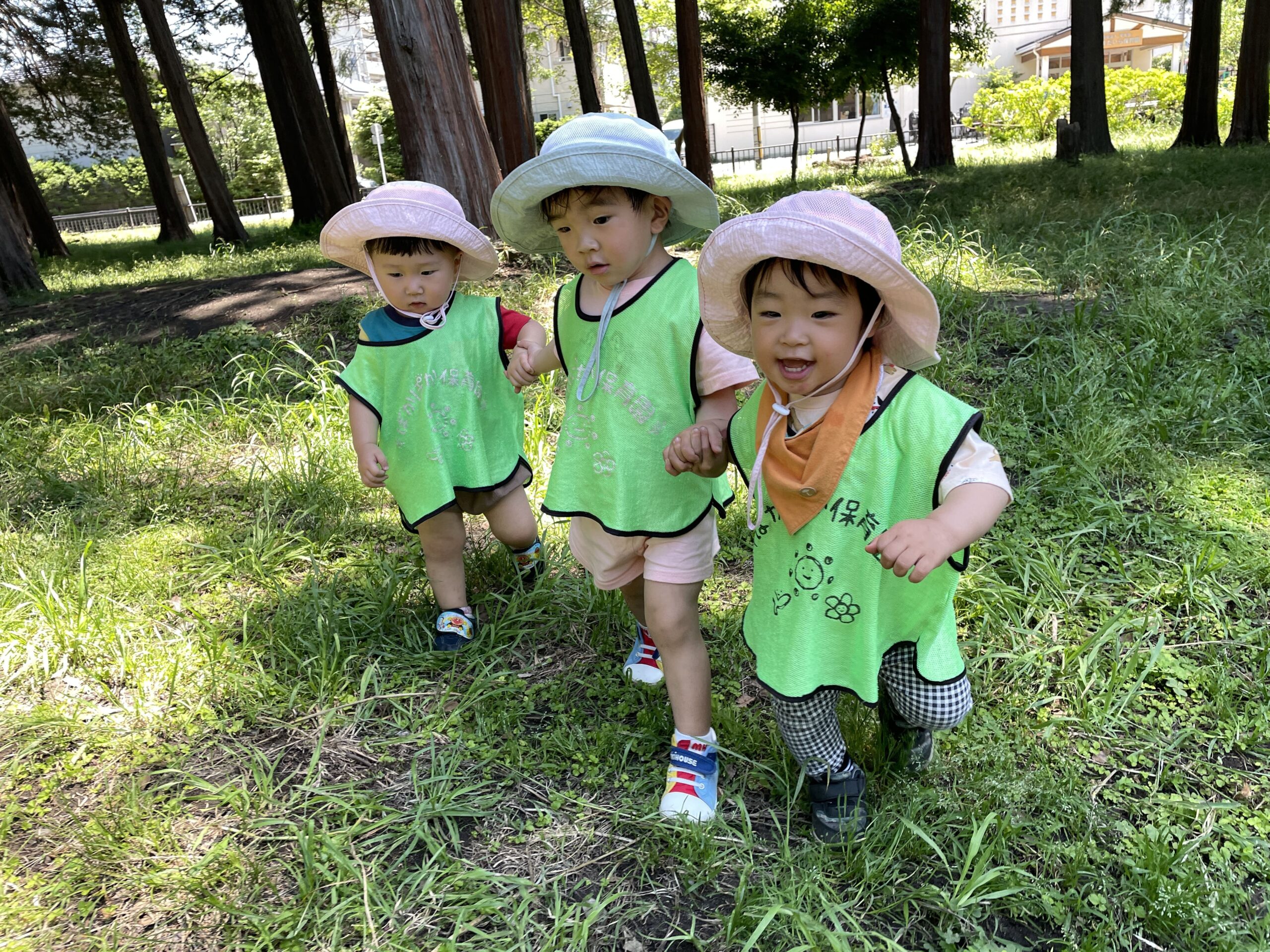 そして今日、一番輝いていた場面──それは園に帰る時間。2歳児クラスのお友だちが1歳児クラスの子どもを迎えに行き、「いっしょに帰ろう」と手をつないでくれたのです。先生も「お友だちと、手をつないでくれてありがとう」と感謝を伝えました。子どもは「ひとりじゃないよ。いっしょだよ!」ととても立派でした!