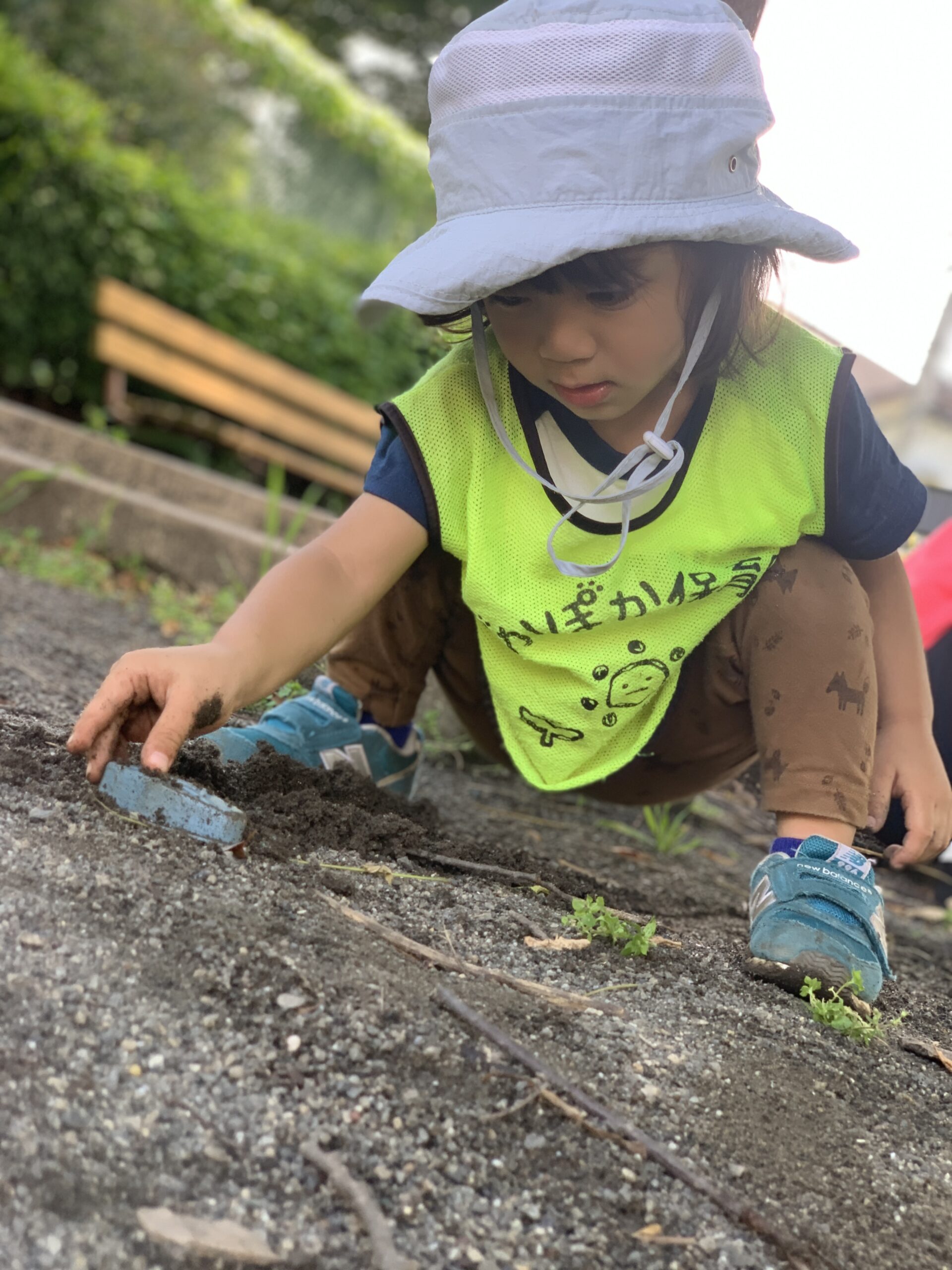 2歳さんは月曜日に植えたサツマイモを見に畑へ行きました!