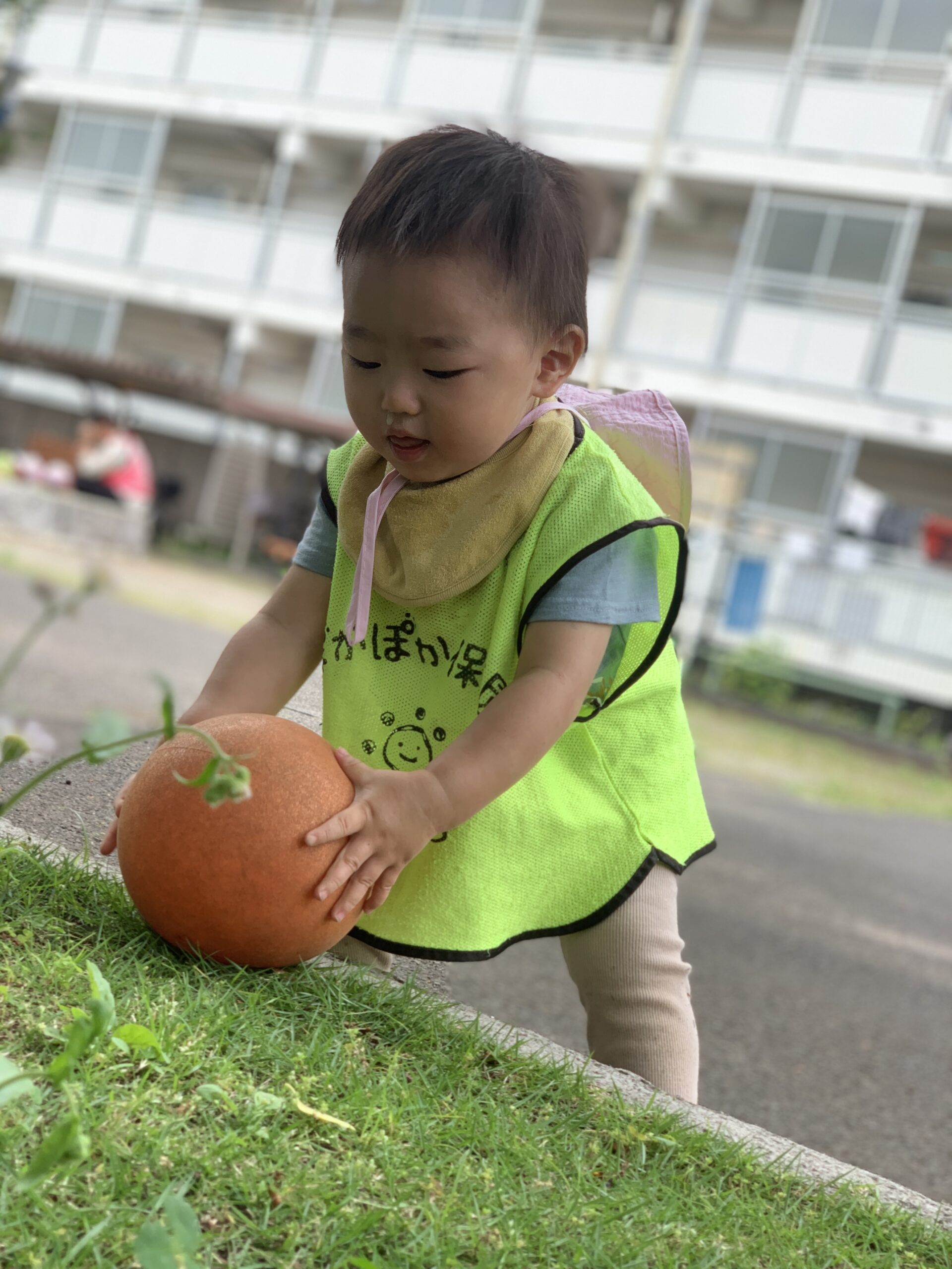 まずは近くの公園へお出かけ。4月にはつかまり立ちだった0歳児さんが、今日はなんと!ボールを追いかけながらバランスをとって歩く姿を見せてくれました。「せんせい、あるけたよ〜!」と嬉しそうに笑うその姿に、成長の早さとたくましさを感じました。