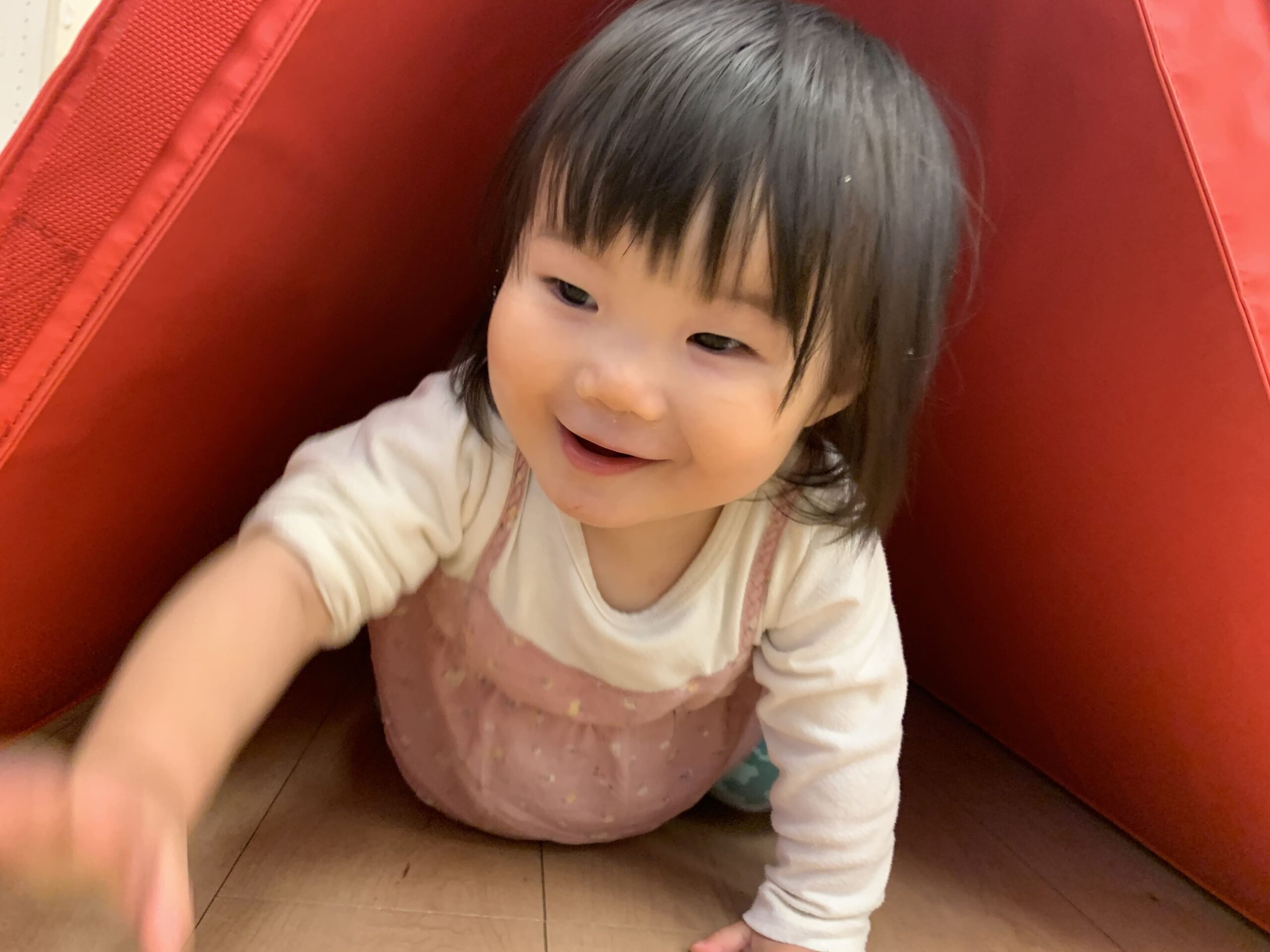 「のぼれたよー!」 「つぎはこっちー!」と声が飛び交い、 マットで作ったトンネルも大人気!