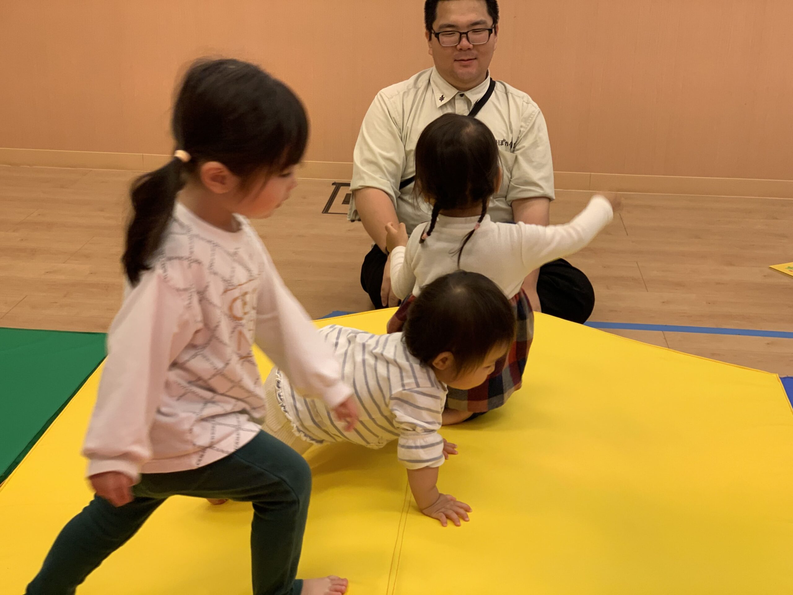 「せんせい、みててね〜!」と くぐってはニッコリ。 体の使い方がどんどん上手になってきて、 成長を感じるひとときです。