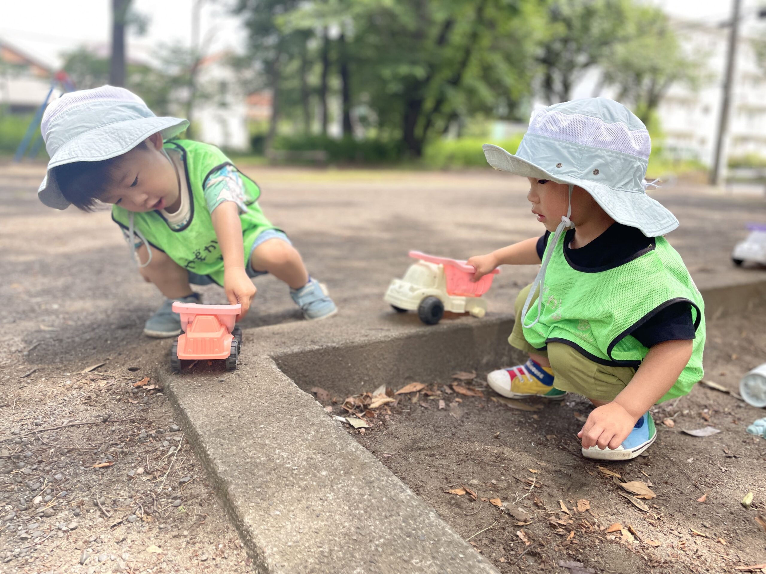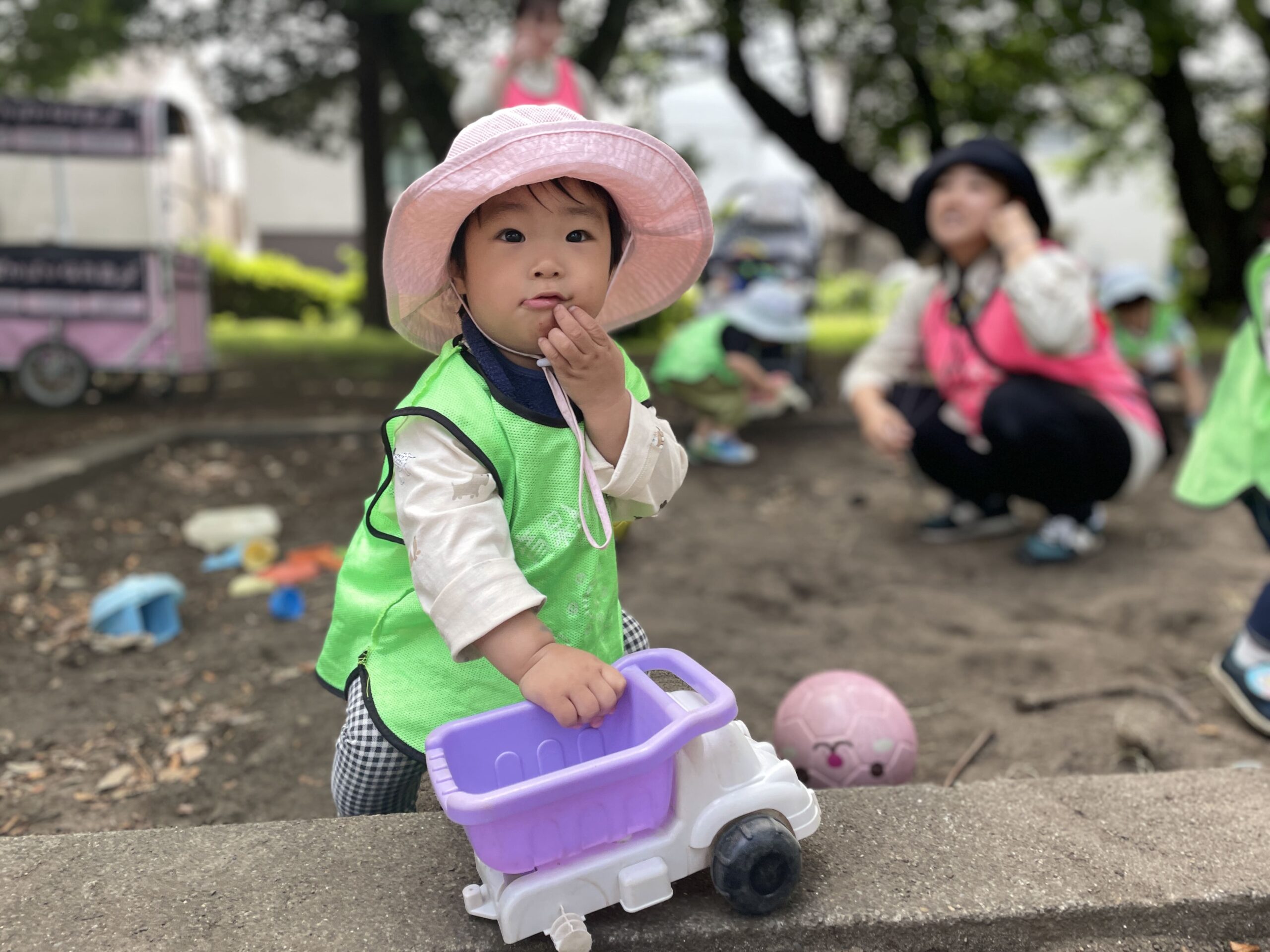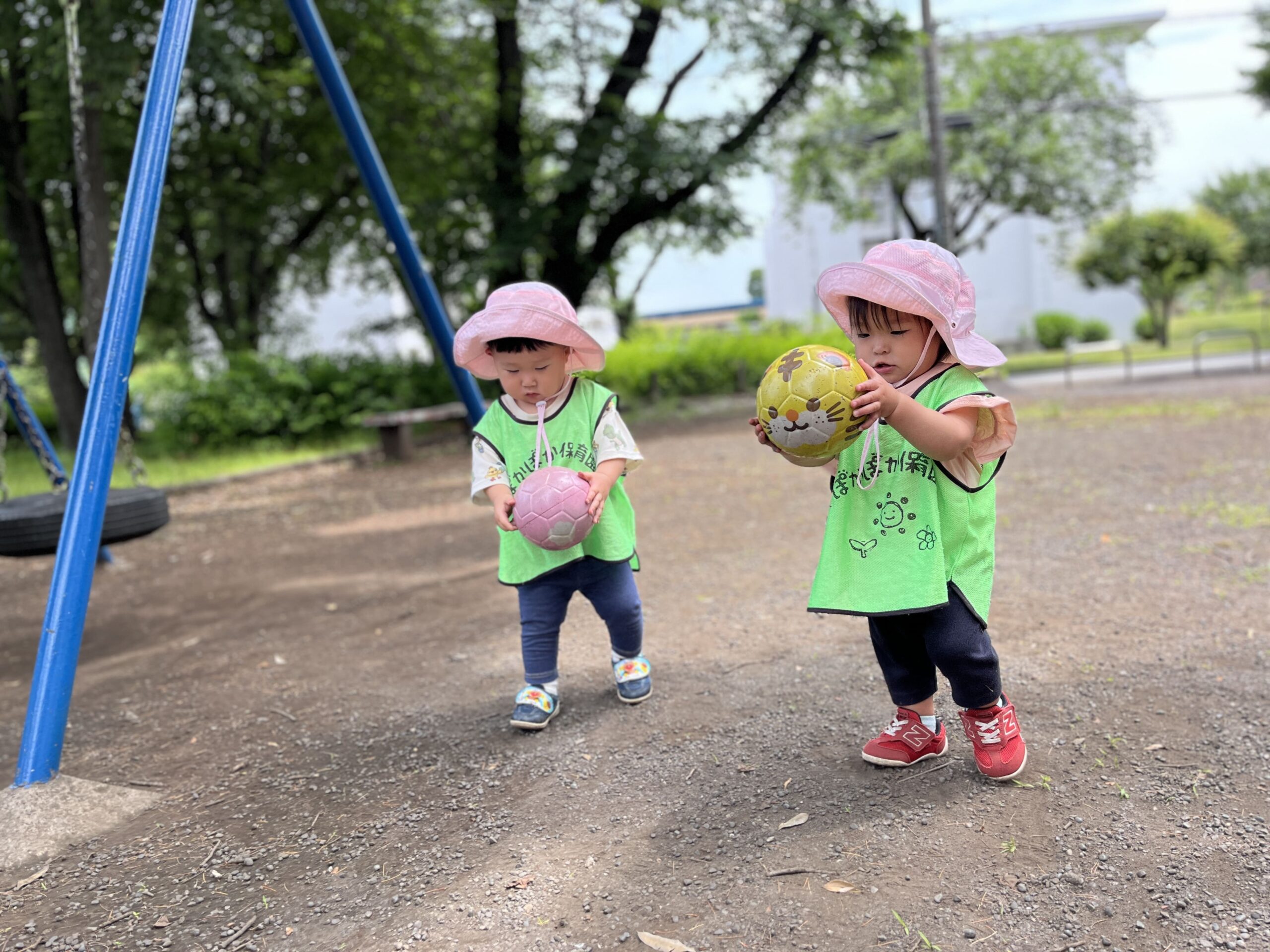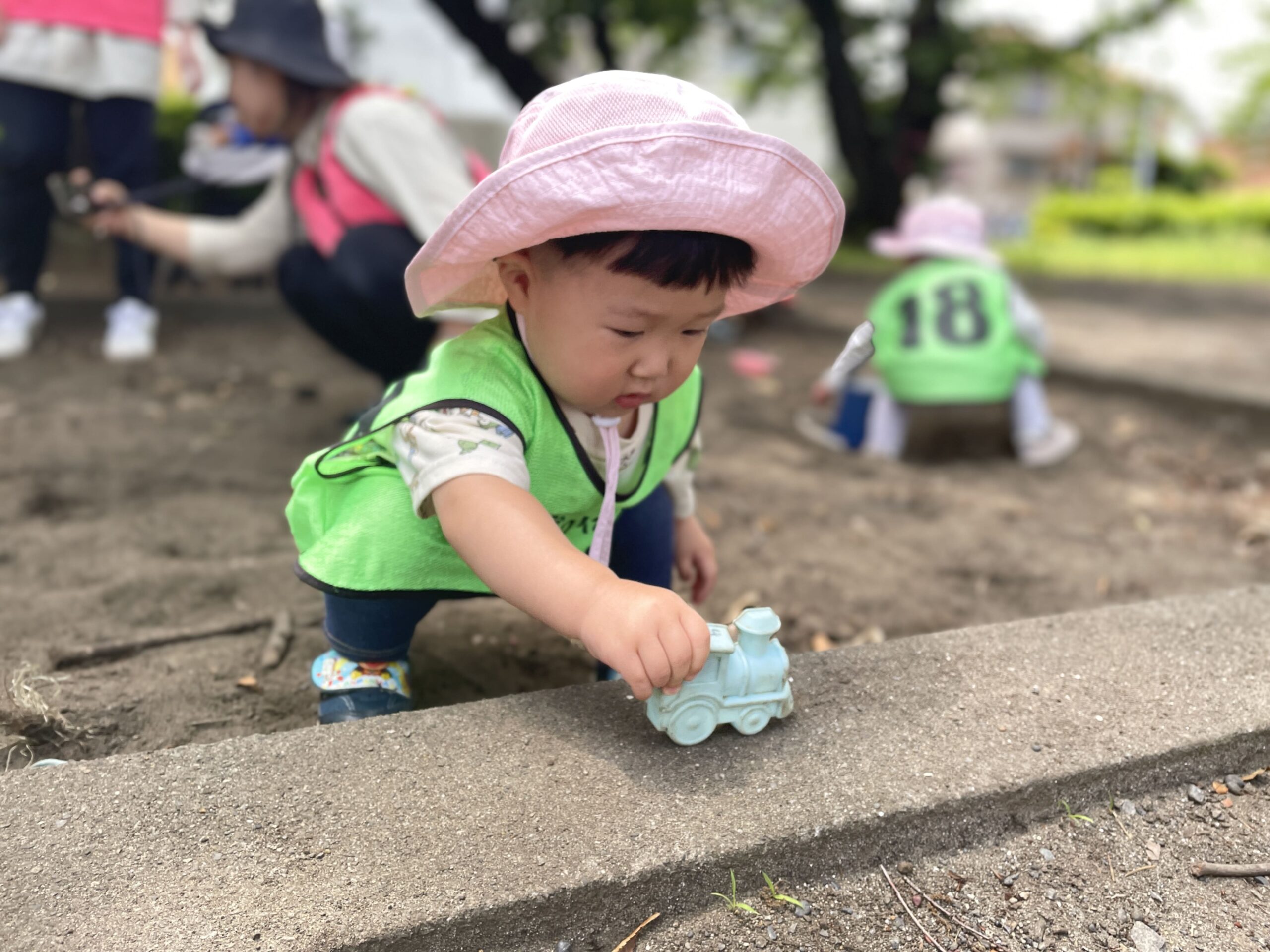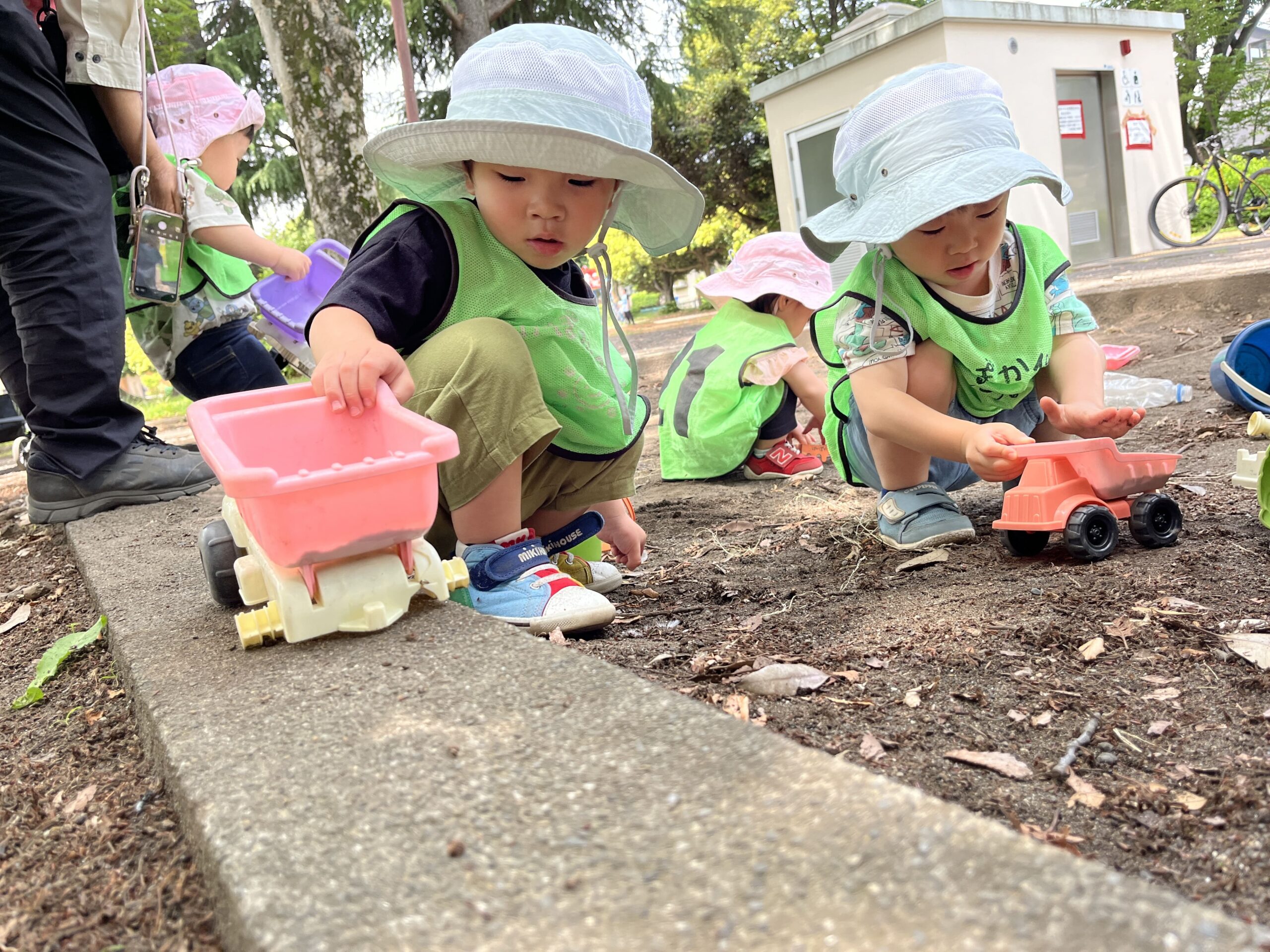0~2歳児の子どもたちは、公園や保育室でのびのびと過ごしました。
