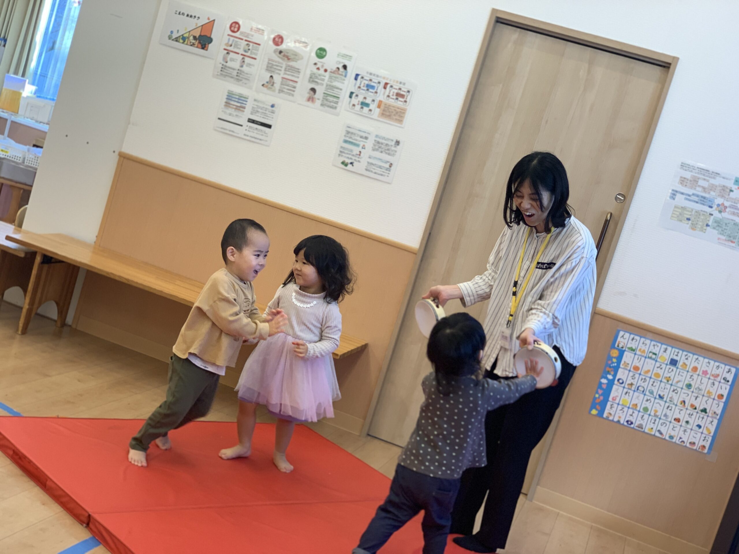 歌声を響かせながら、歌に合わせてタンブリンを叩けたお友だちも!素晴らしかったです!