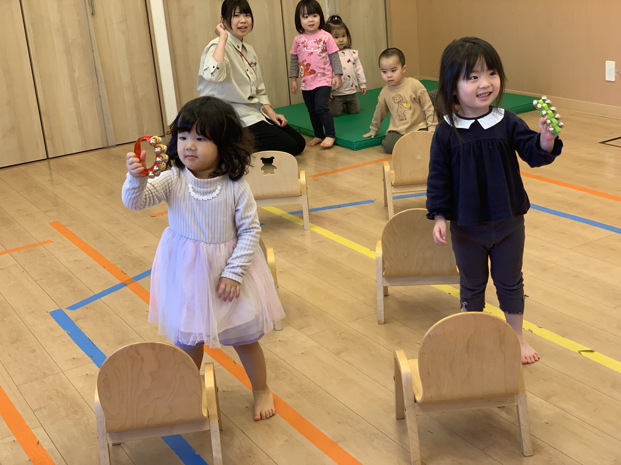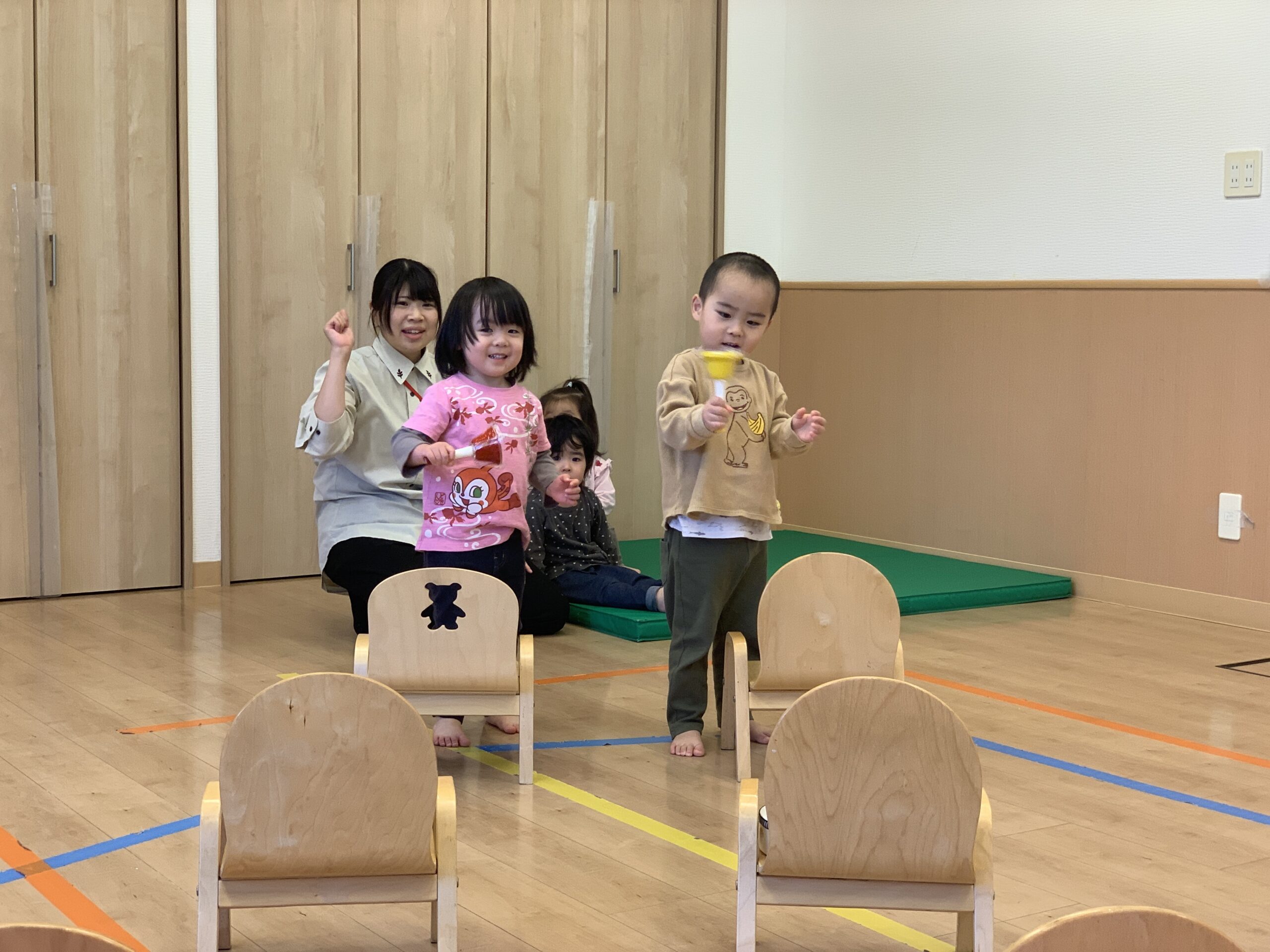 曲が鳴ったら歩く!終わったら止まる!を理解して、楽しそうに参加することができていました!