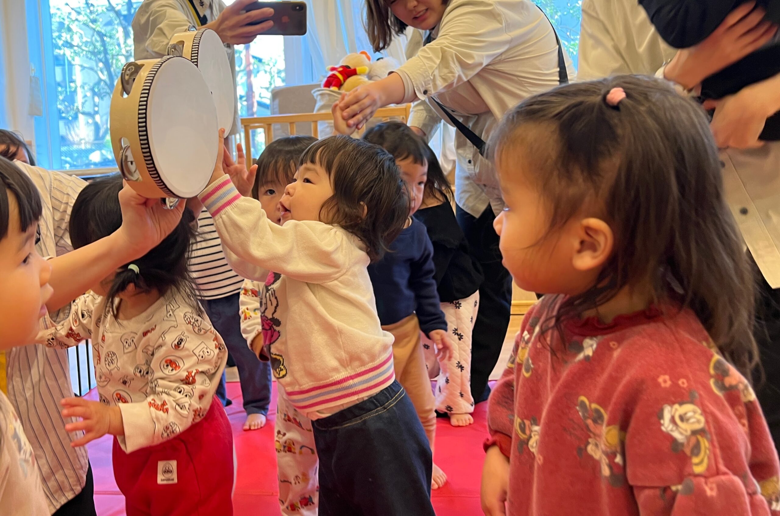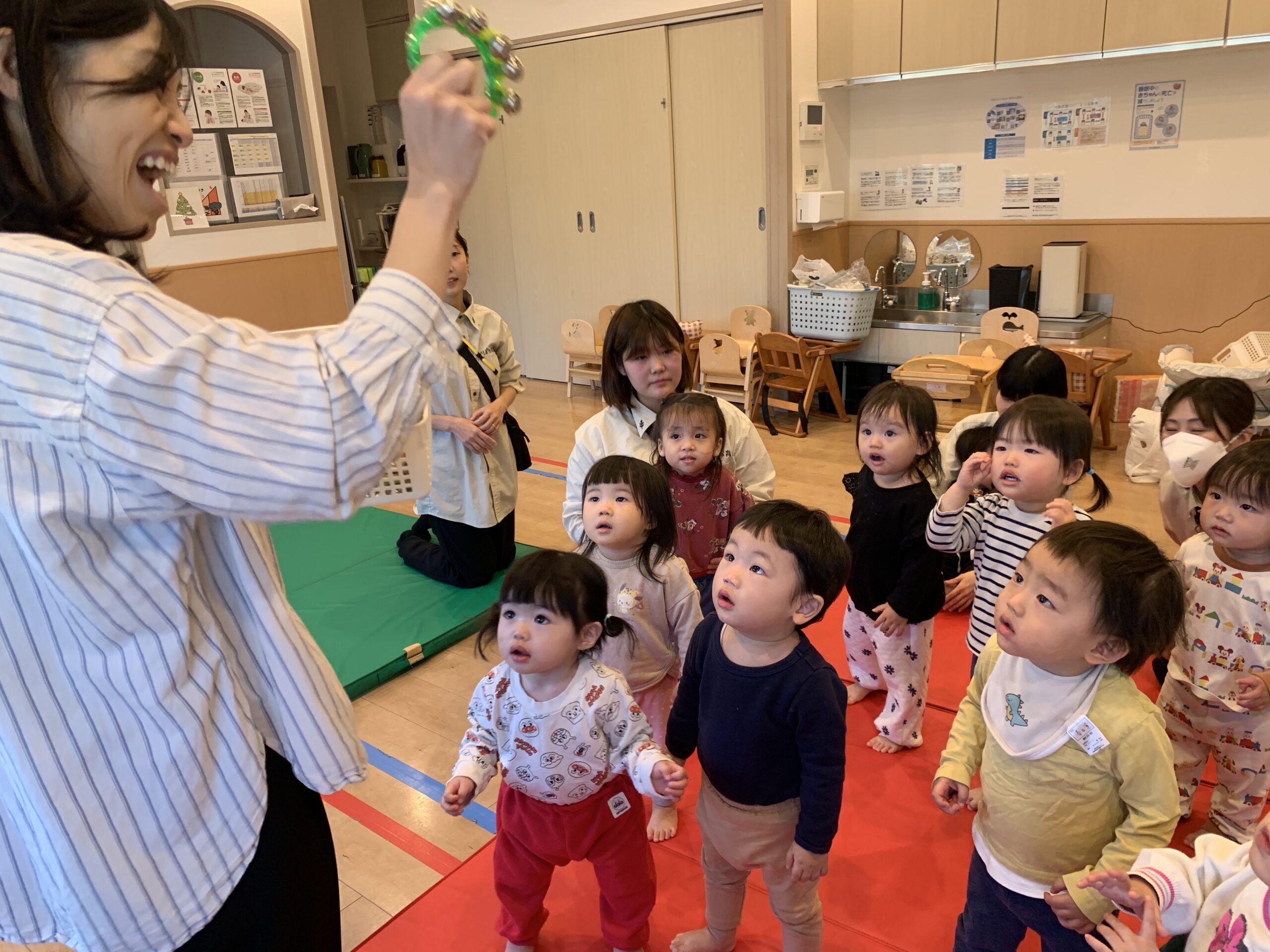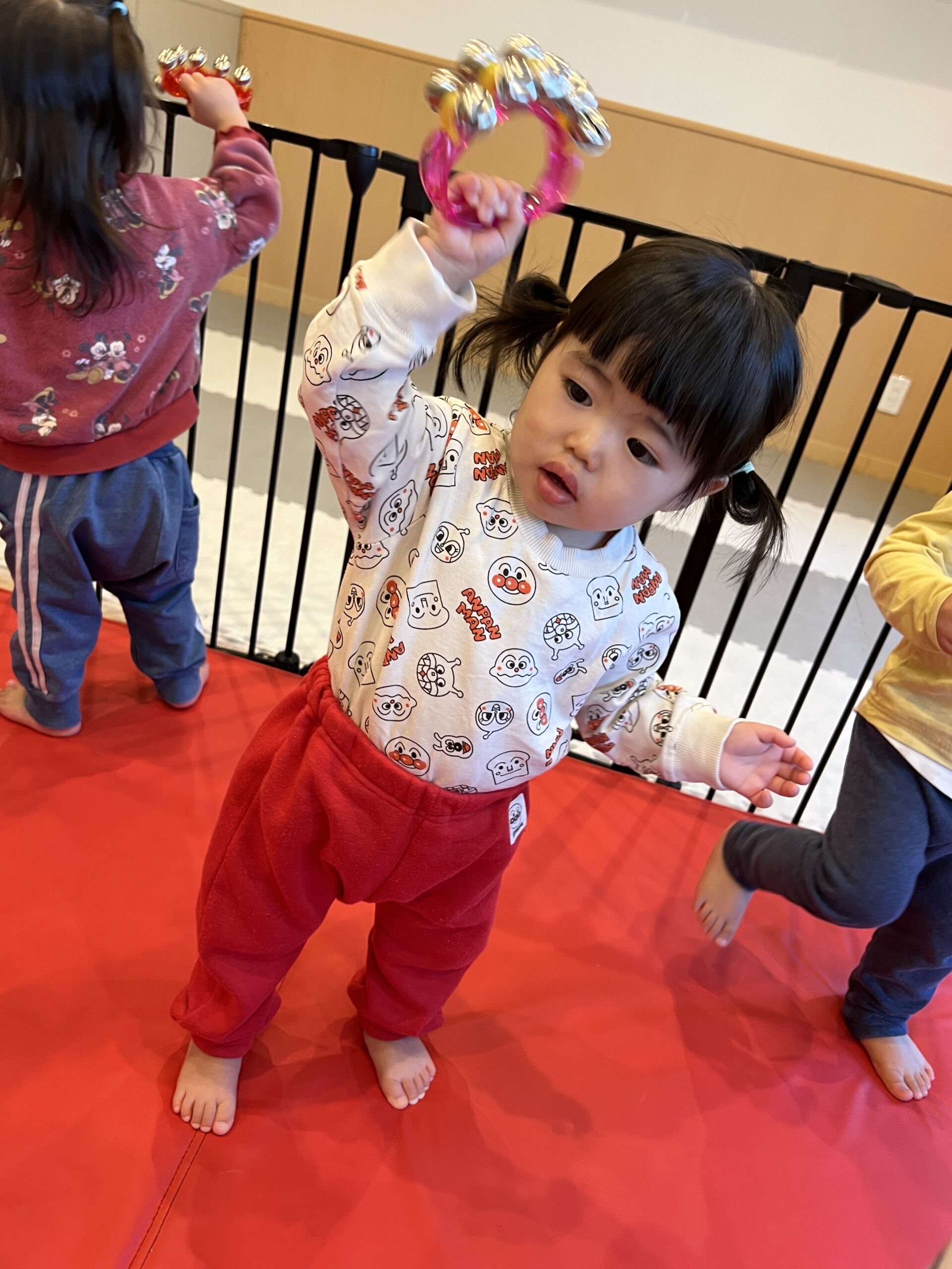 歌声を響かせながら、歌に合わせてタンブリンを叩けたお友だちも!素晴らしかったです!