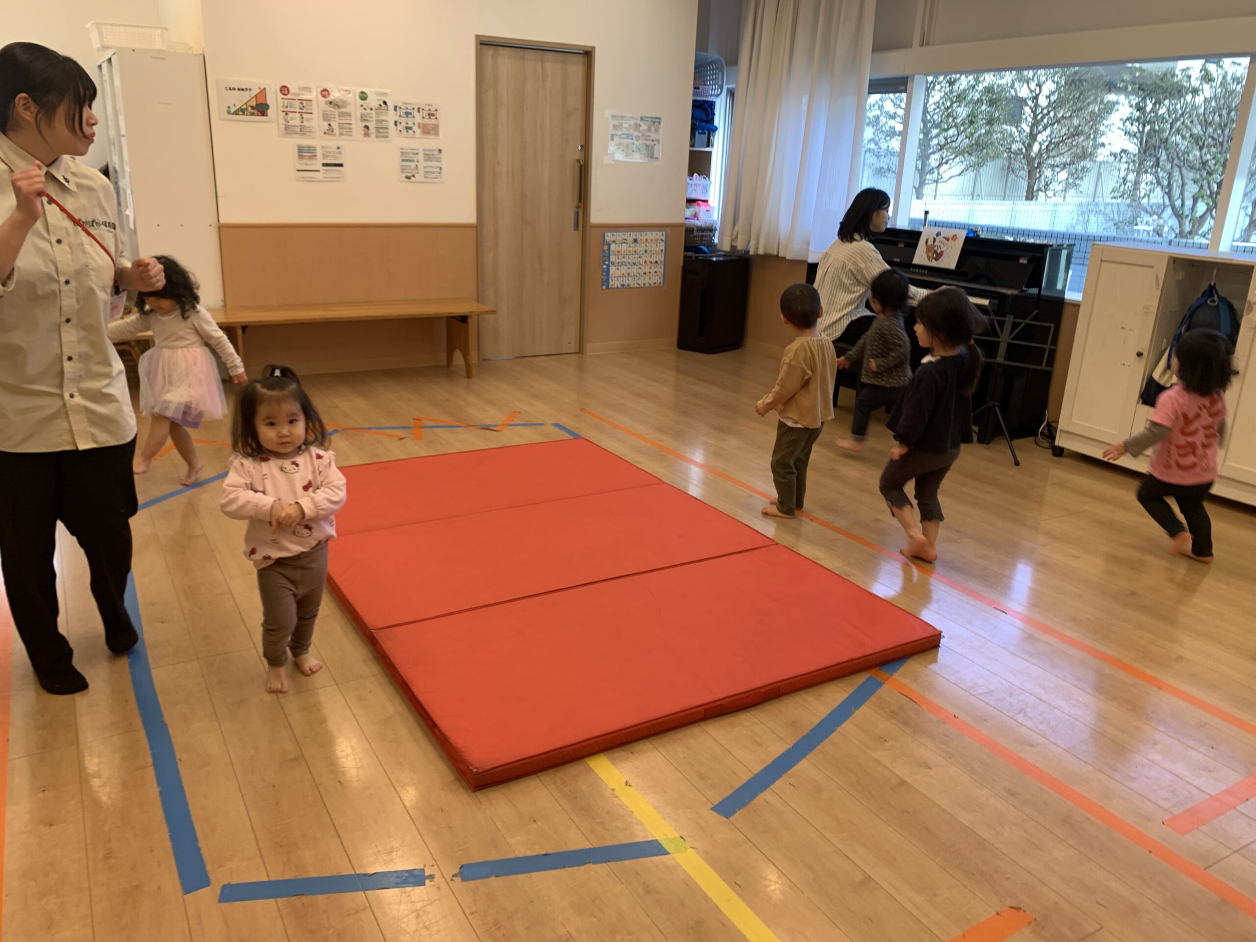 曲が鳴ったら歩く!終わったら止まる!を理解して、楽しそうに参加することができていました!