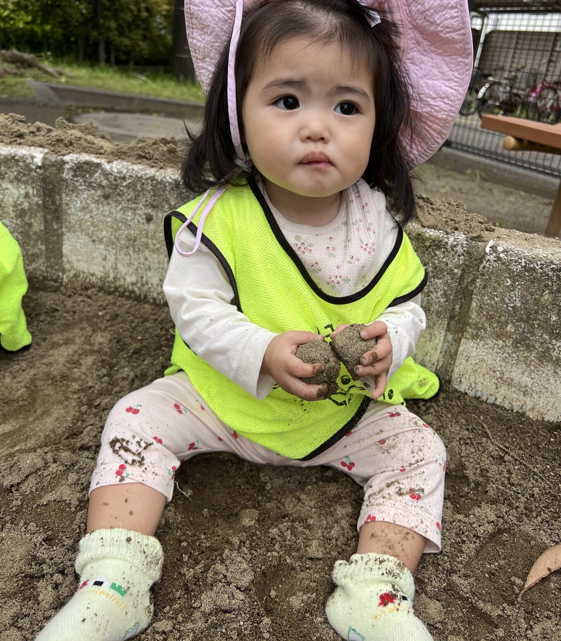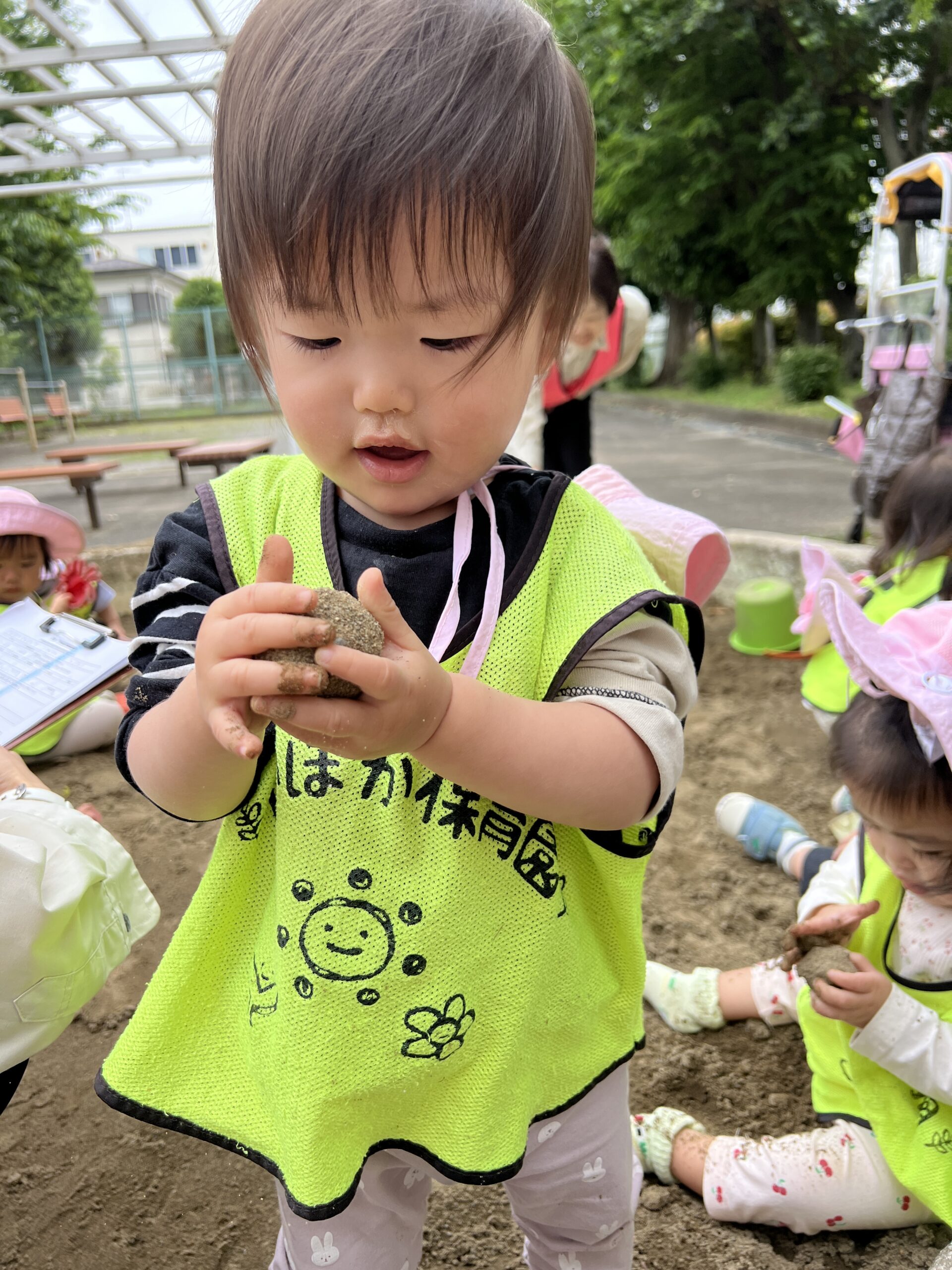 そのあとは公園へ!泥の感触に興味津々なお友達は、泥団子に夢中。