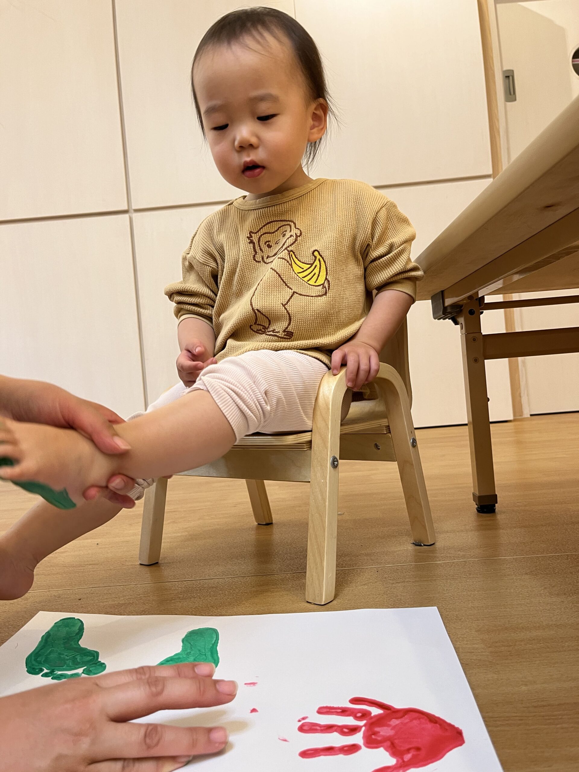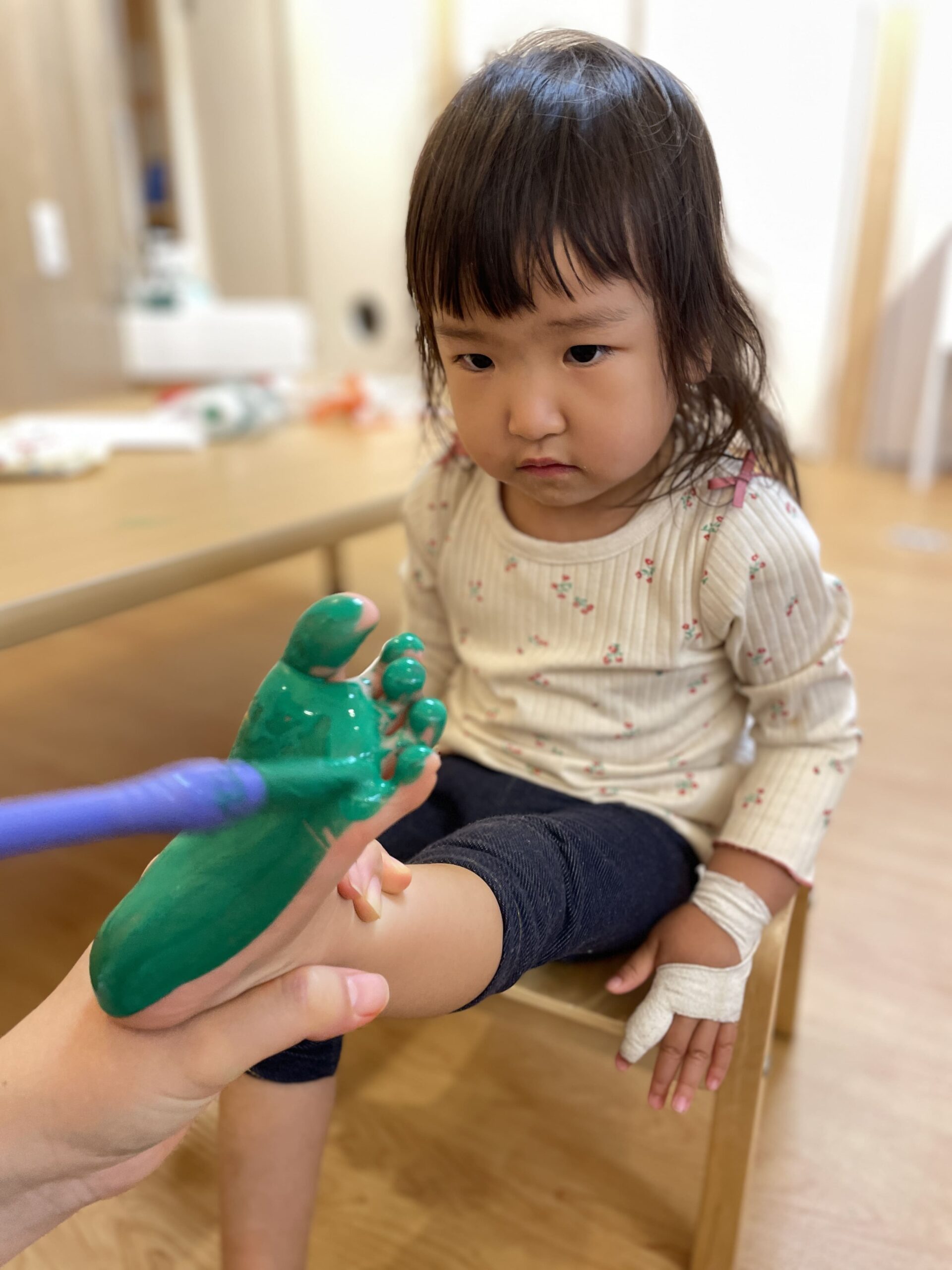 絵の具が嫌いなわたしですが手型足形は嫌がらずじっと見守ってくれました♬