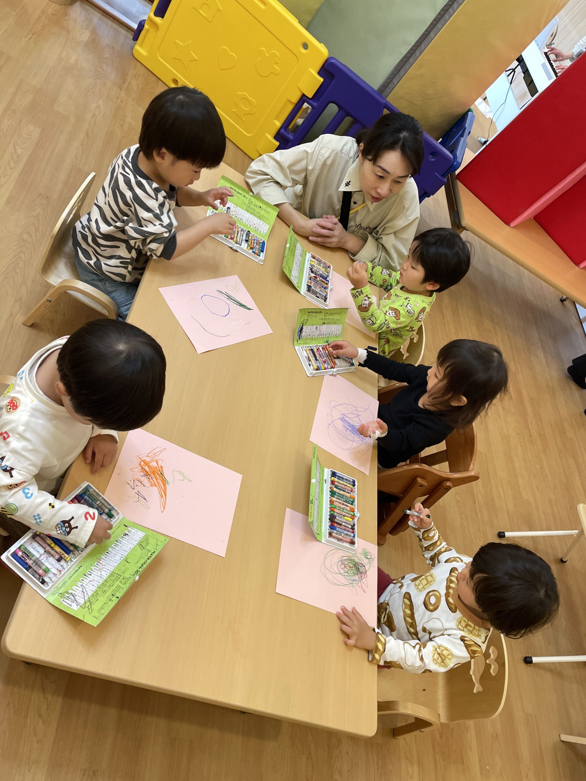 一つの机に大集合してみんなで仲良く描きました!