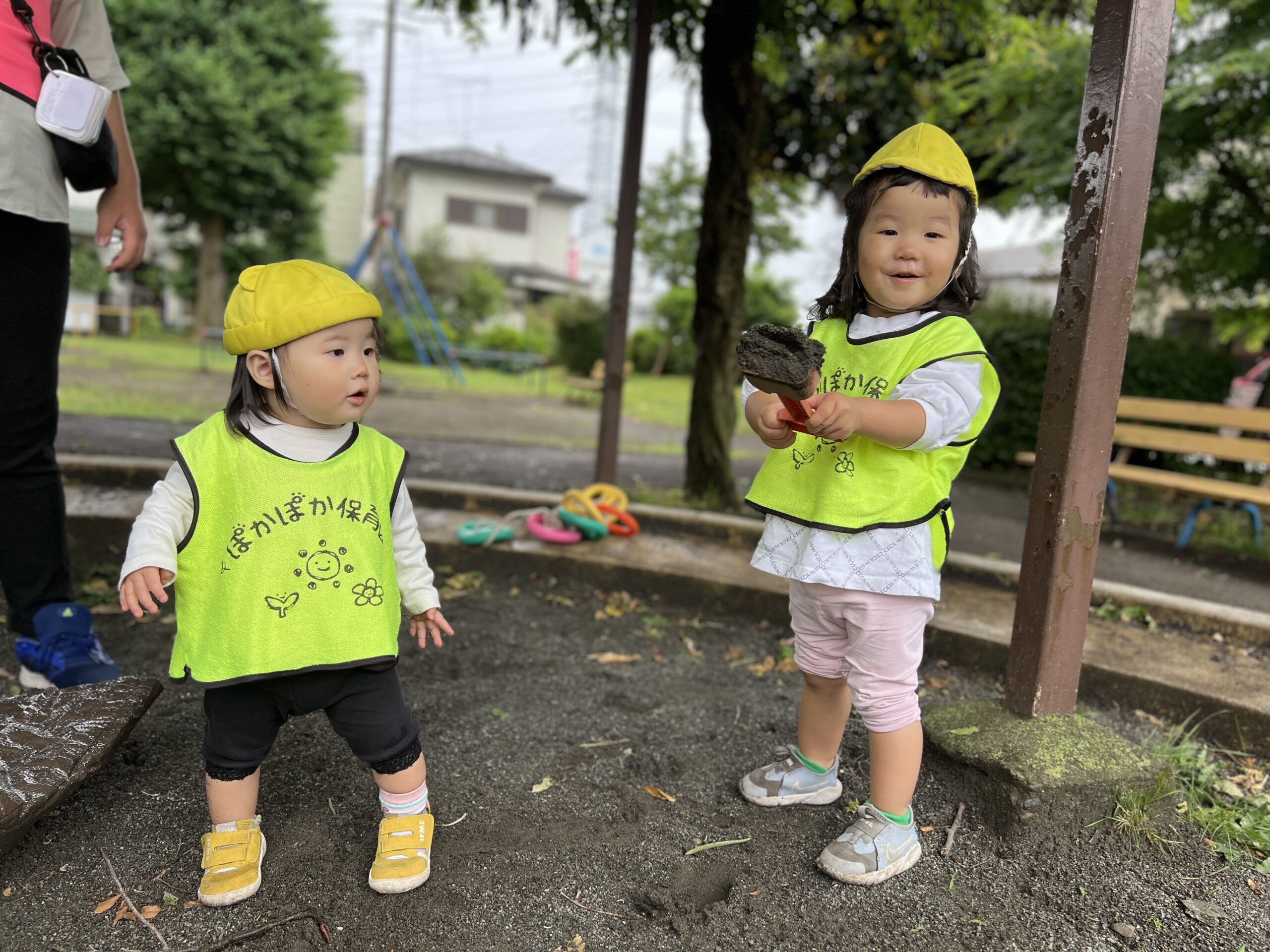 「ぬれてるかも~?」と心配していたお友だちも、公園に着く頃には「すべりだいしよう!」「お砂場もいいね~!」とやる気まんまん!