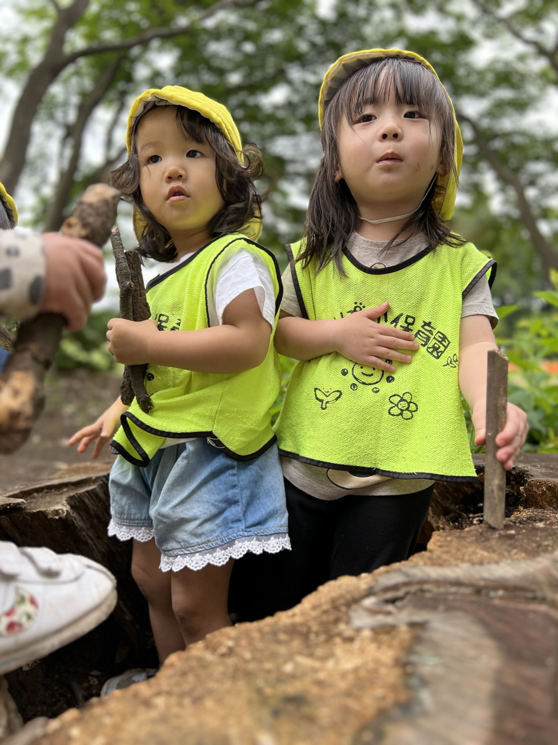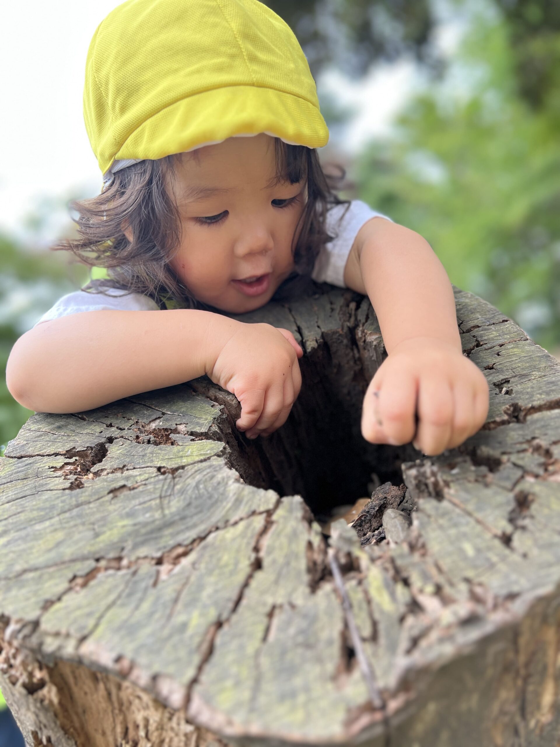 自分から切り株に登って「みてー!たかいー!」と手を広げた姿。