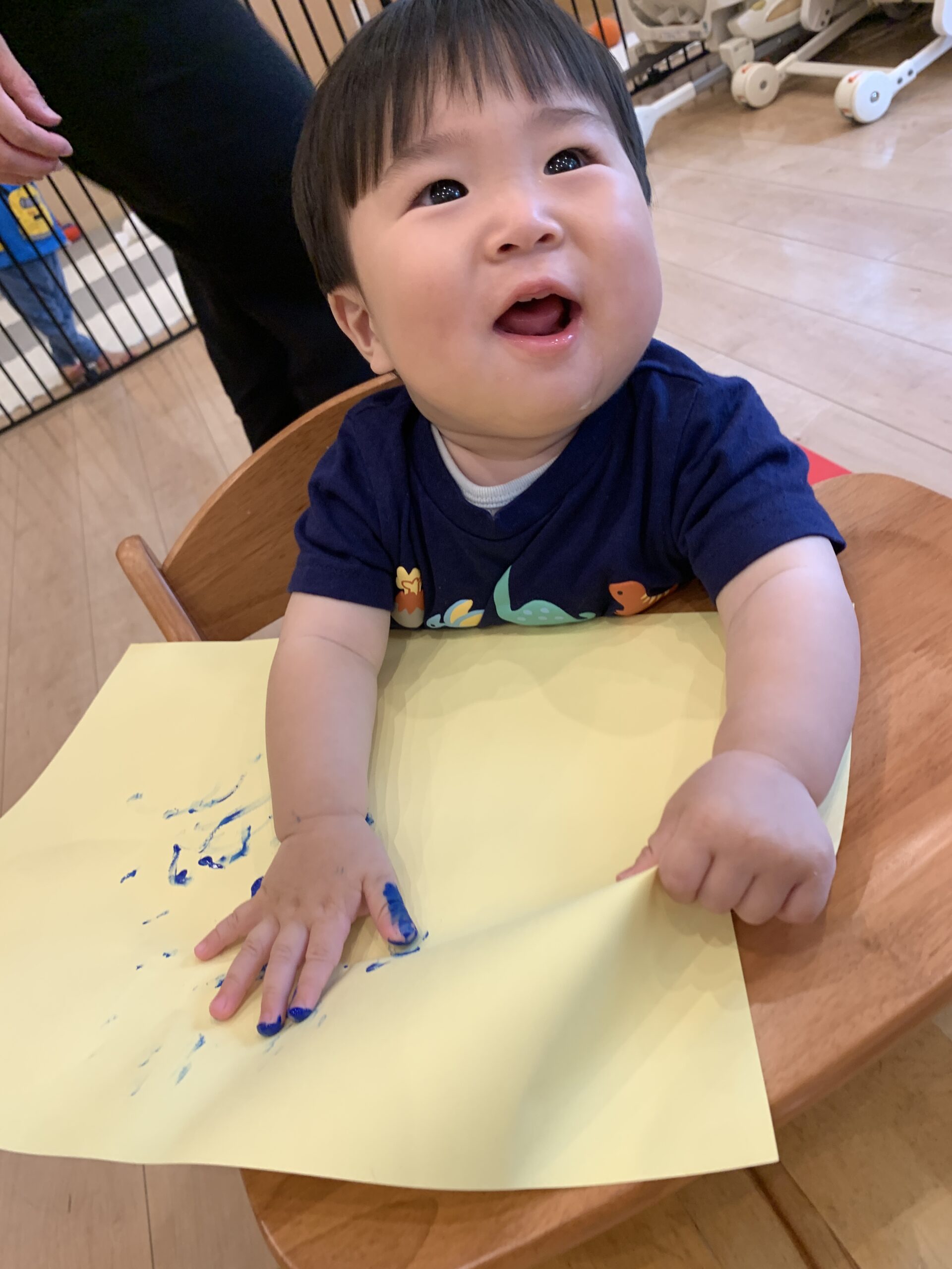 小さいお友だちは、保育室での制作活動に夢中。指スタンプで絵の具の感触を楽しみながら、ぺたぺたと紙の上に色を重ねていく様子は、とっても微笑ましかったです。絵の具が付いた手を得意げに見せてくれる笑顔に、思わずこちらもにっこり♪色や感触を通して、五感がたっぷり刺激されていました。