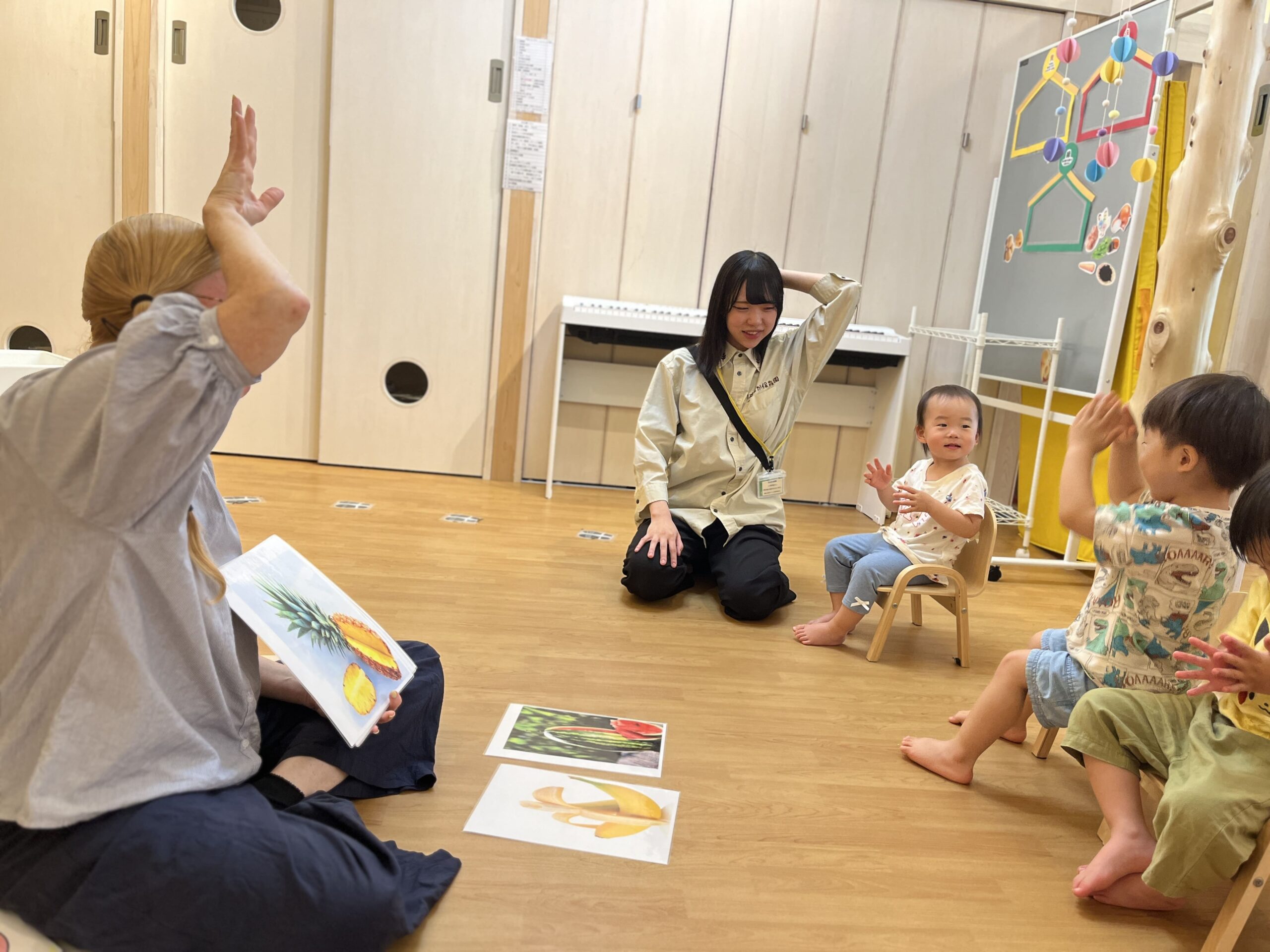 最後は絵本を使ってクイズタイム。「この色の果物な〜んだ?」と英語で聞かれ、「アボカド!」と答える姿に、見ていた大人の方がびっくり!