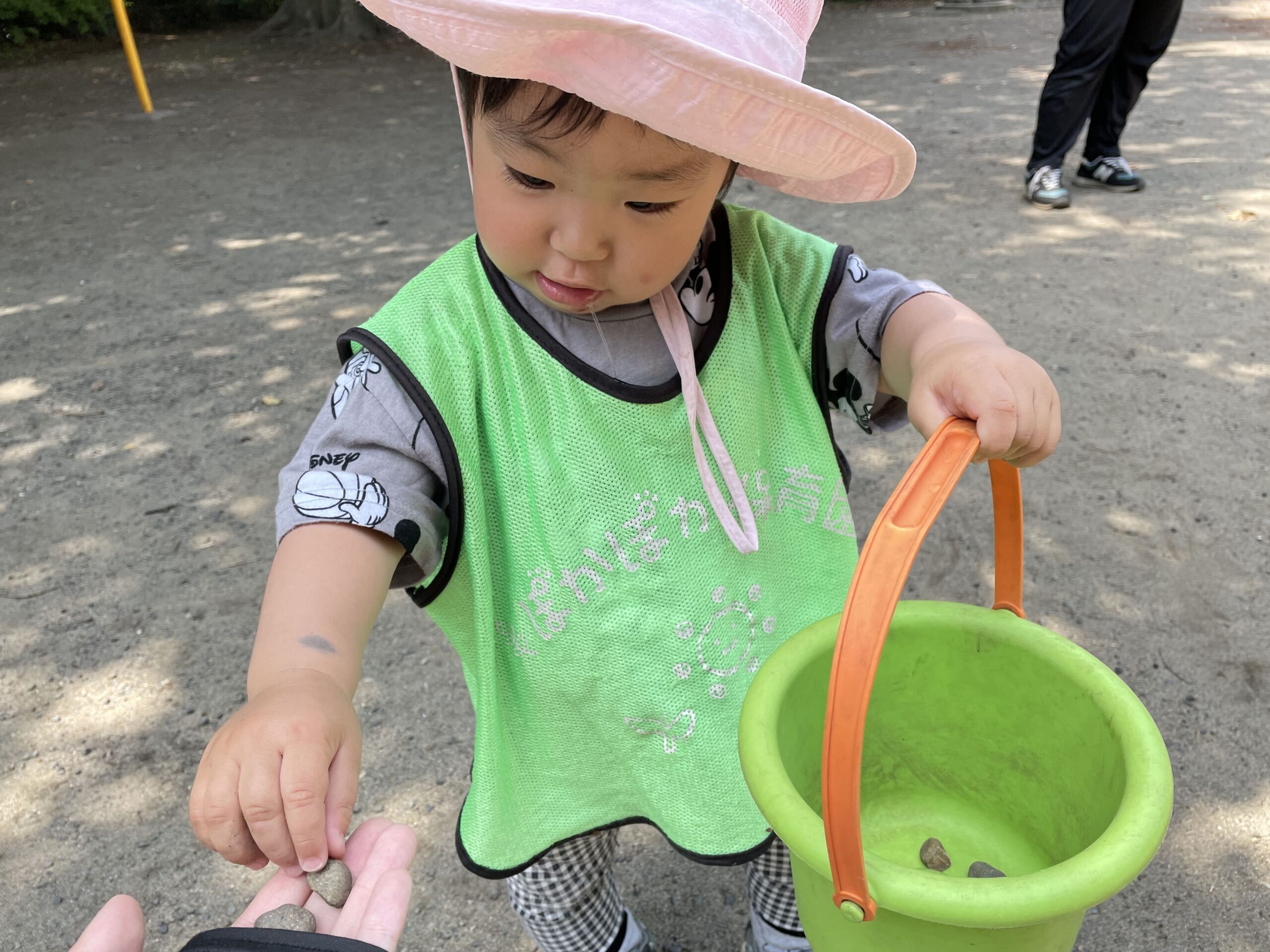 バケツに小石を集める子、木の影を探検する子、それぞれのペースで楽しむ姿には「個別対応」の大切さを改めて感じます。
