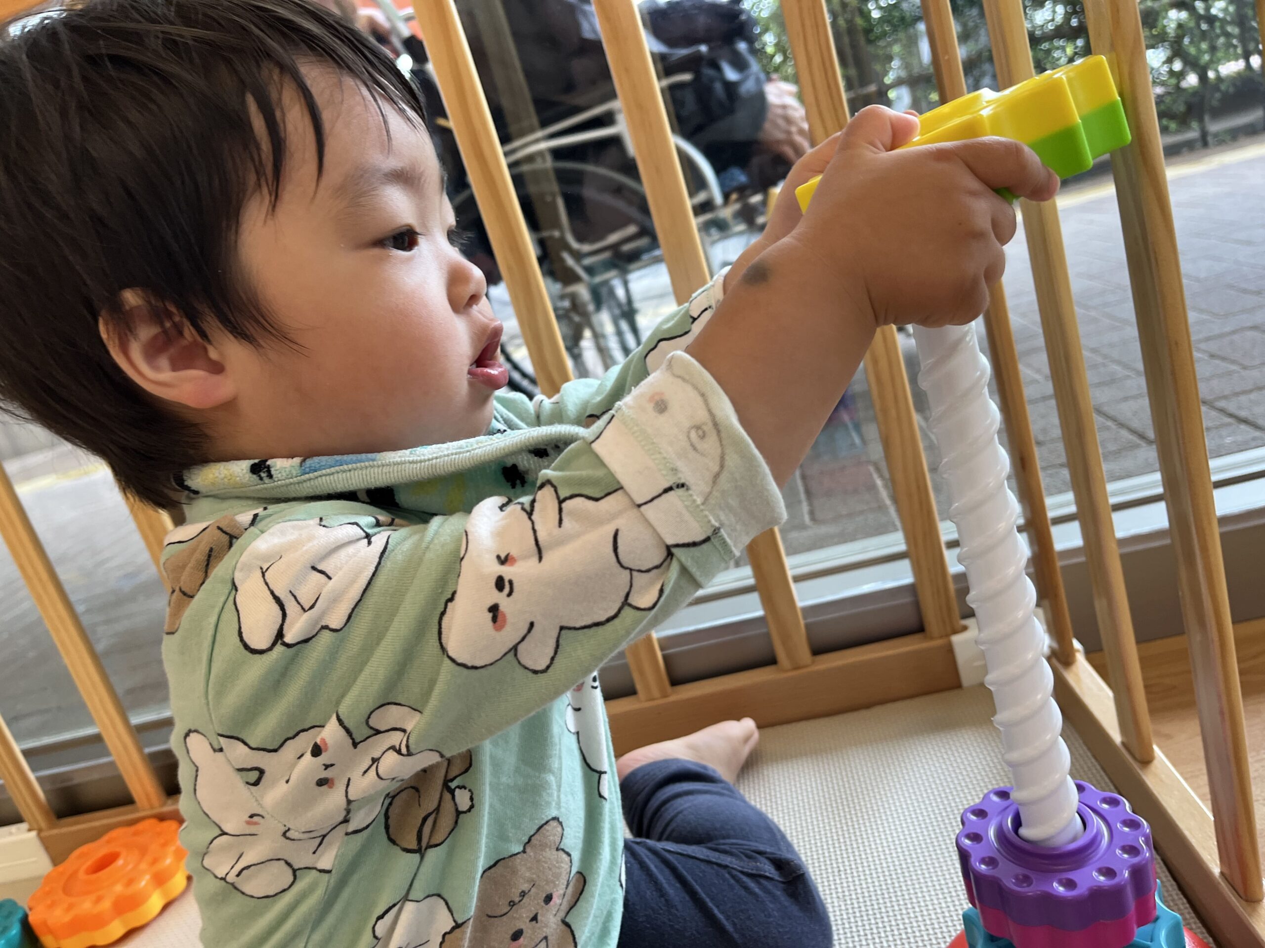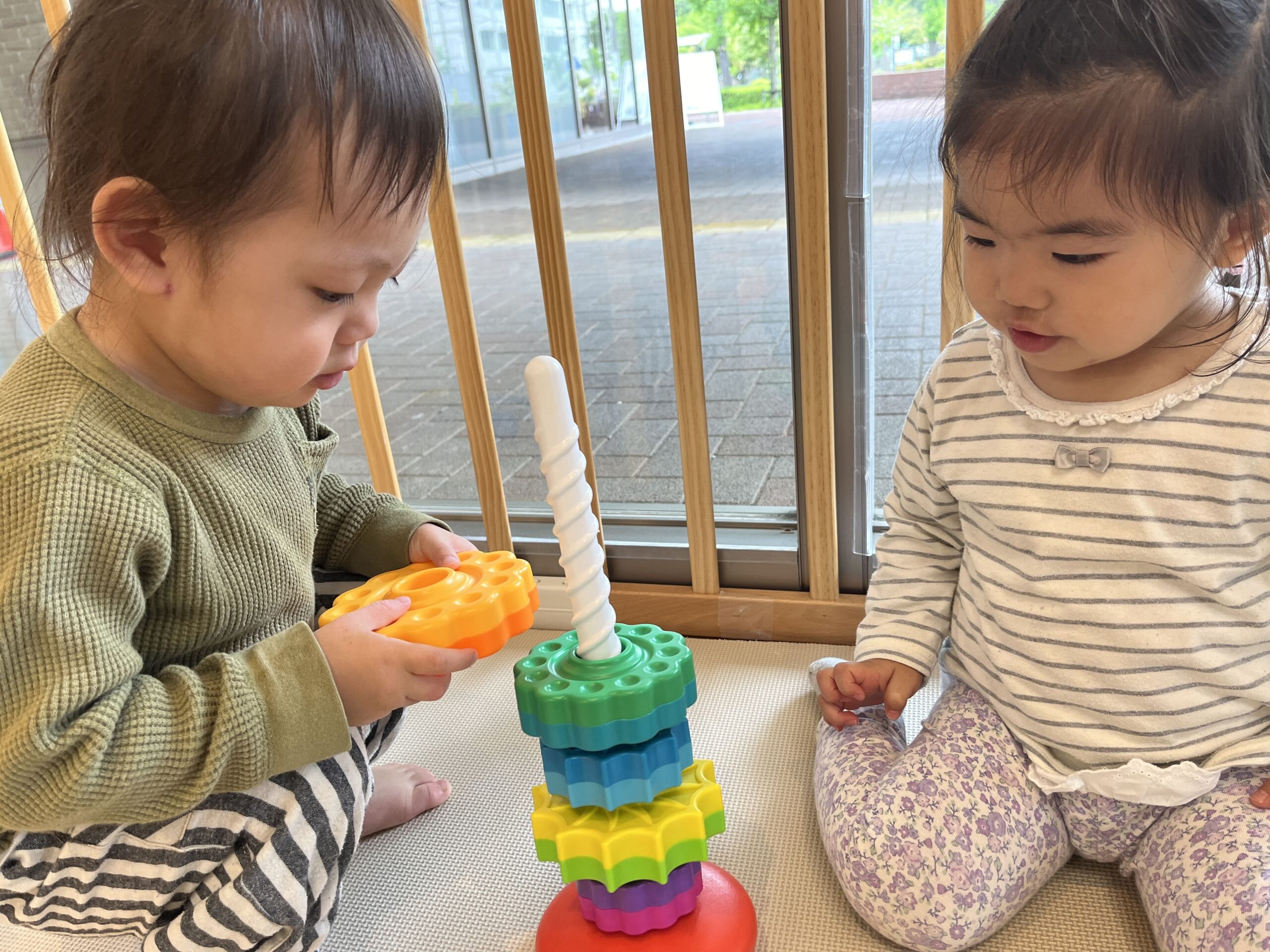 お友だちと仲良く一緒に遊んで褒め合う1歳児さんたち♬