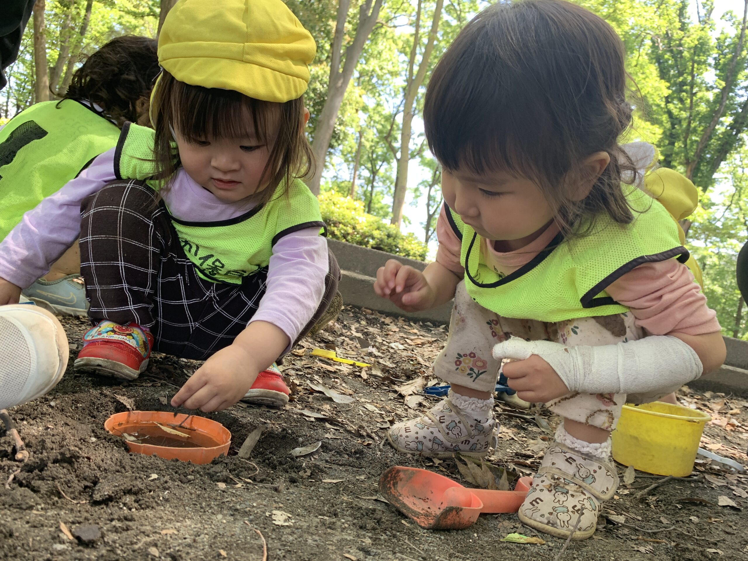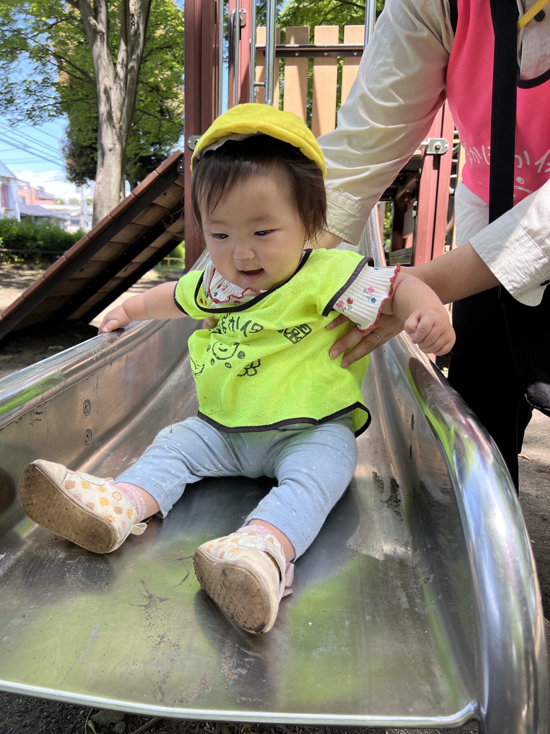公園に到着すると「やったー!」「すべりだい!」「おすなばするー!」と