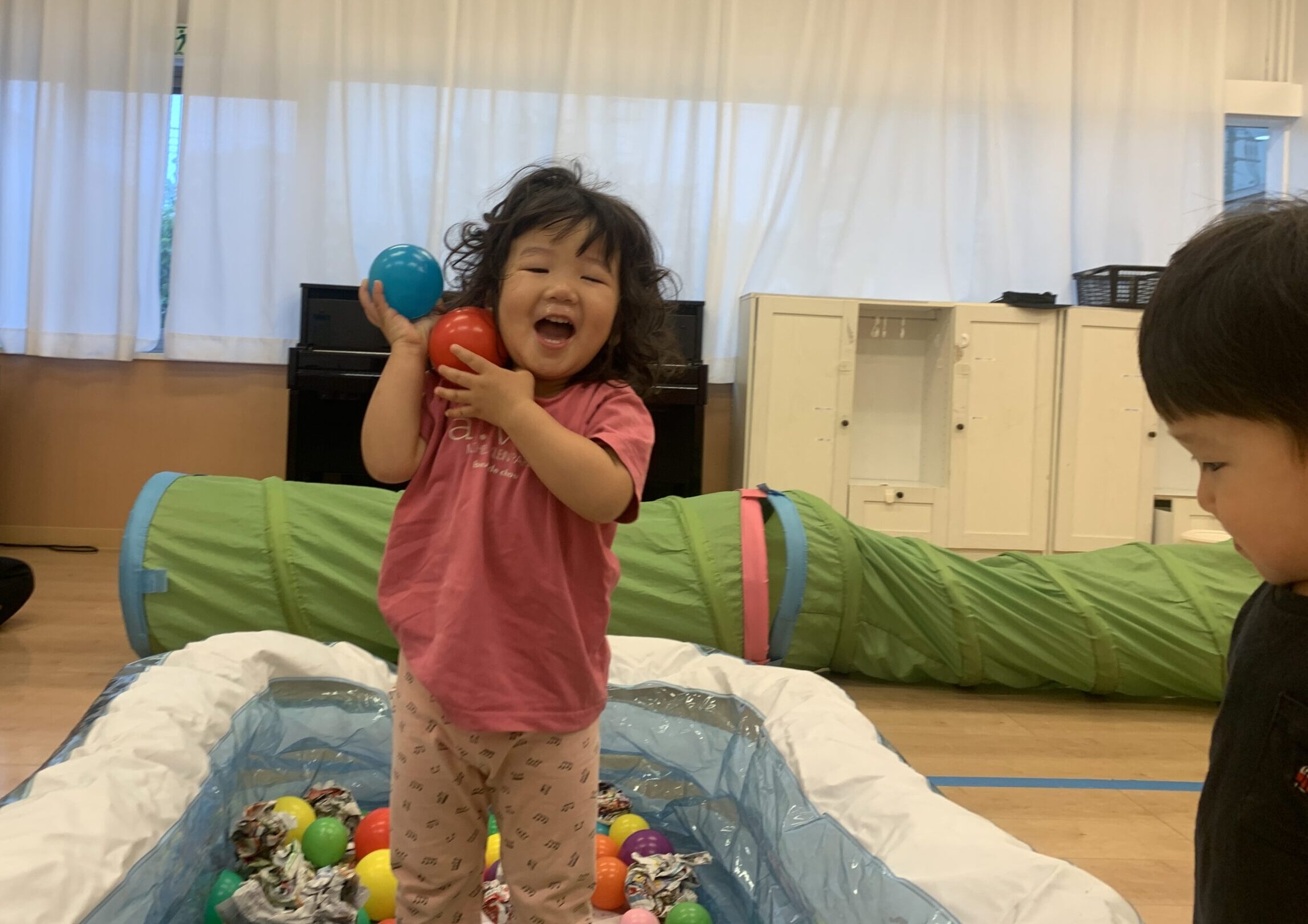 それをボールプールの中に入れると、 「ばらばら~!」とまた楽しさが倍増!