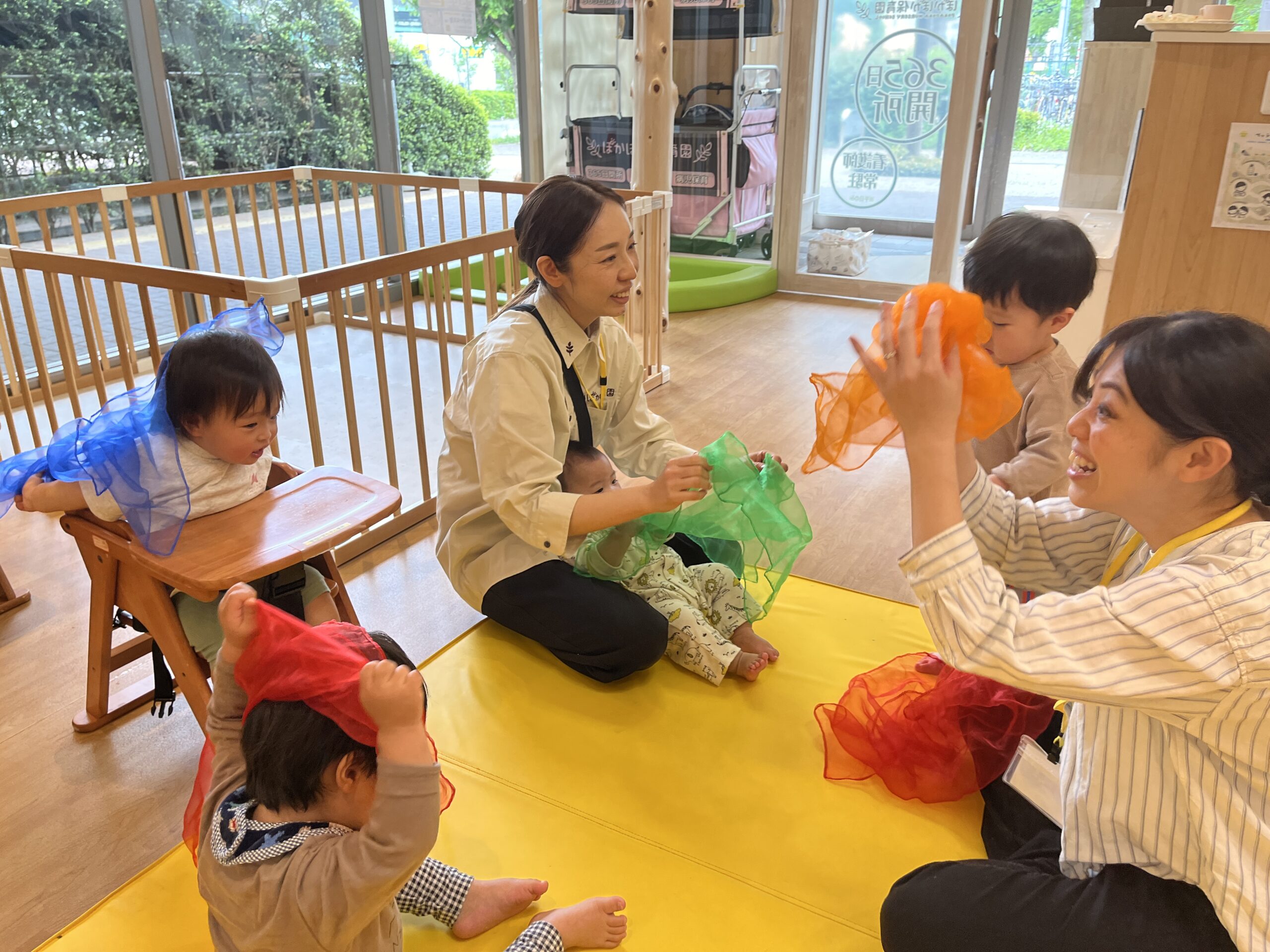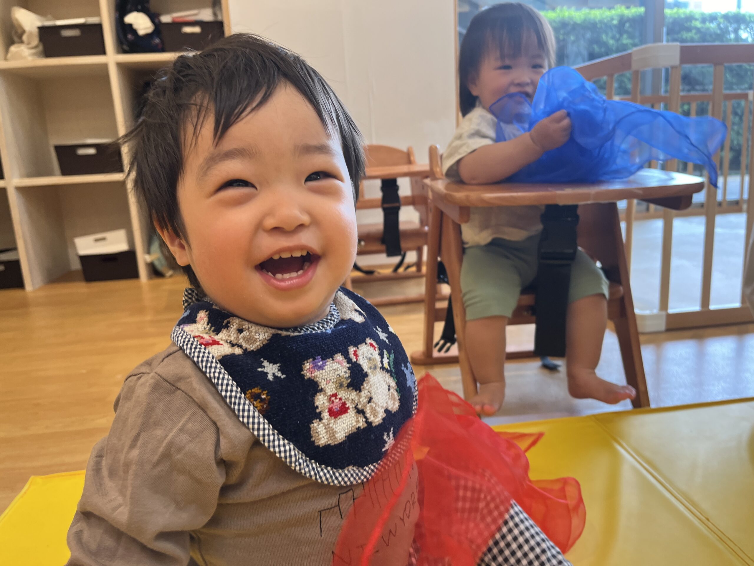 そして、スカーフで【おはながわらった】のふれあいあそび♬
