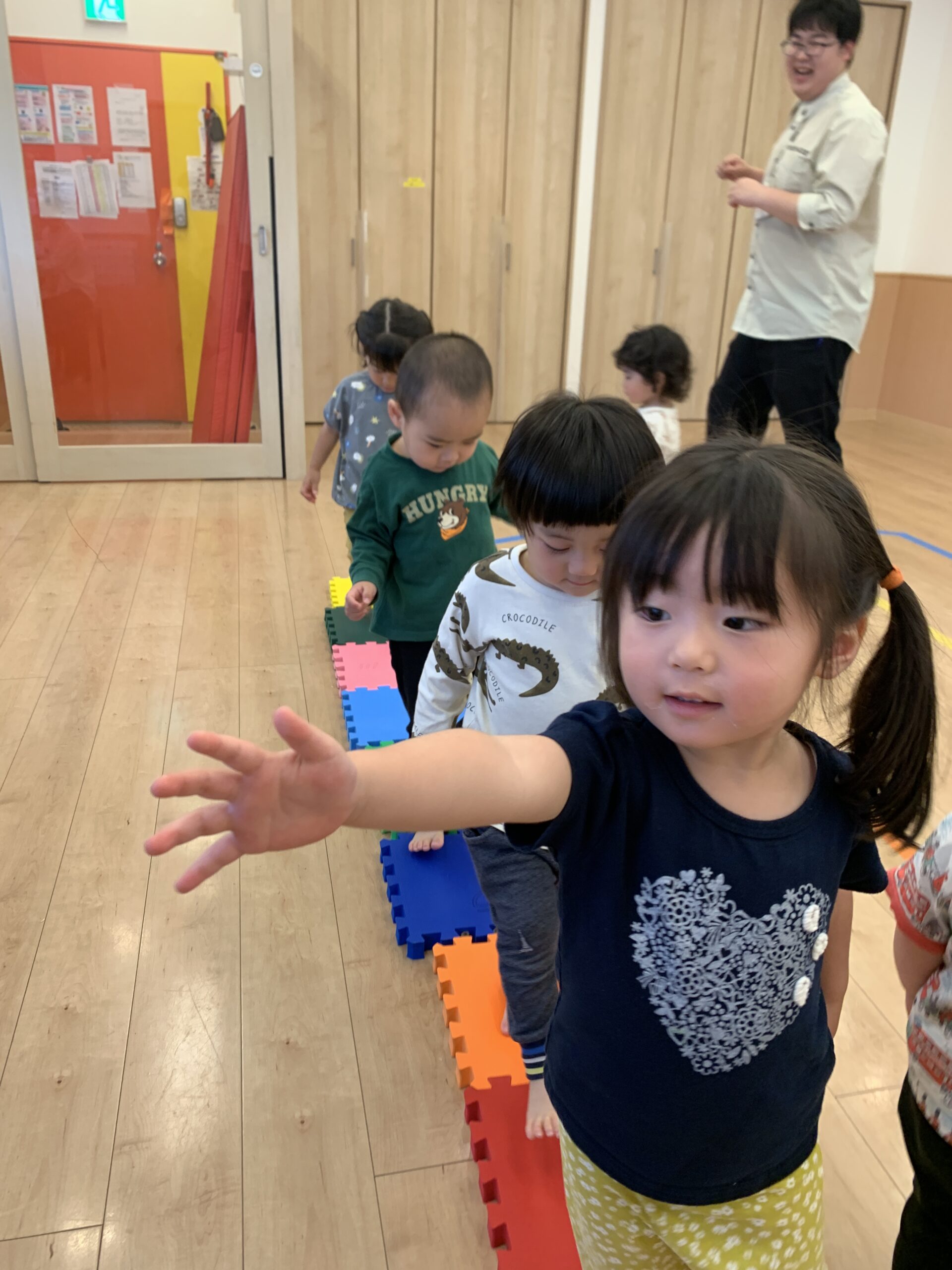 1歳児さんが「せんせい、まてまてー!」と