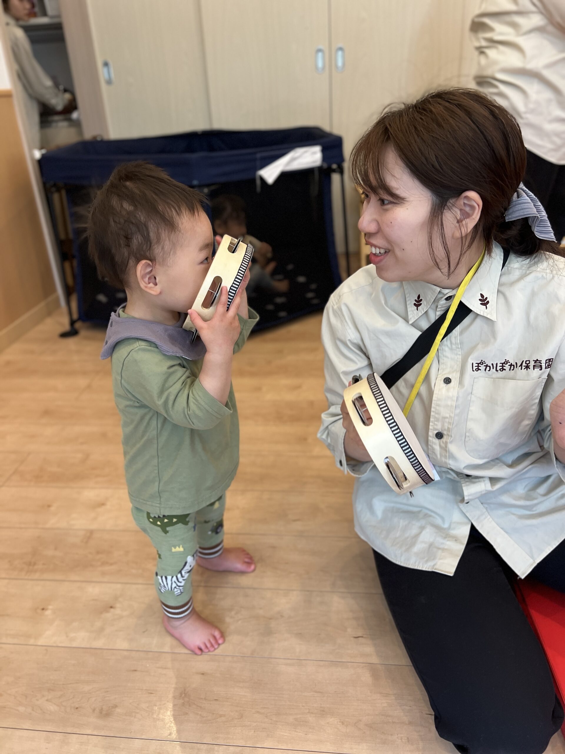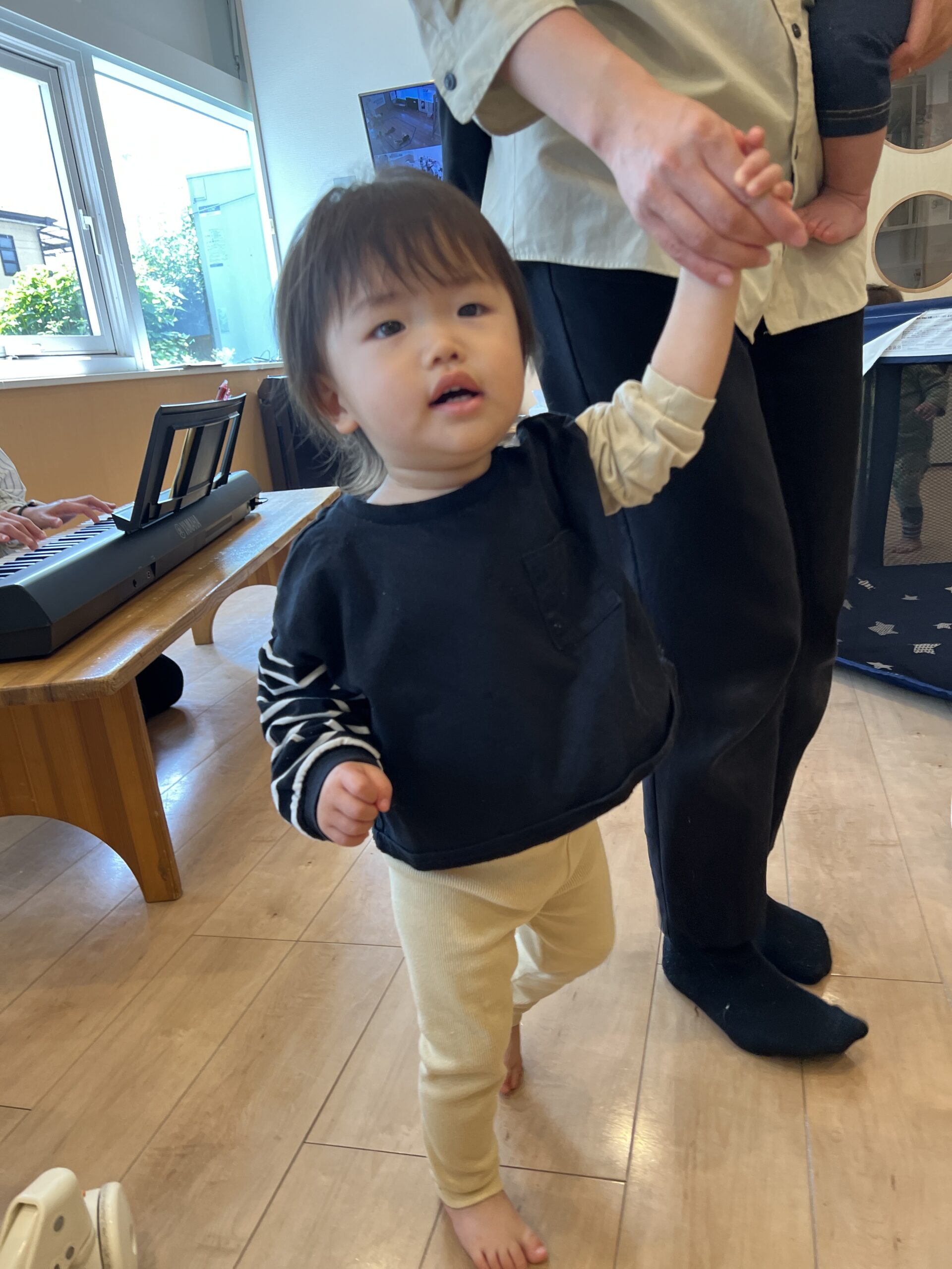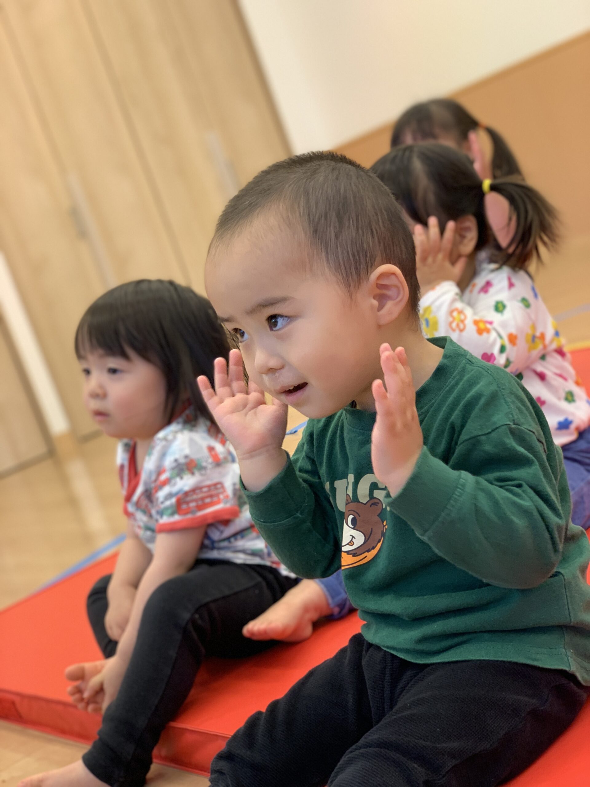音楽あそびが終わるころには、バイバイやハイタッチしてくれるなど、すぐに慣れてくれていました!