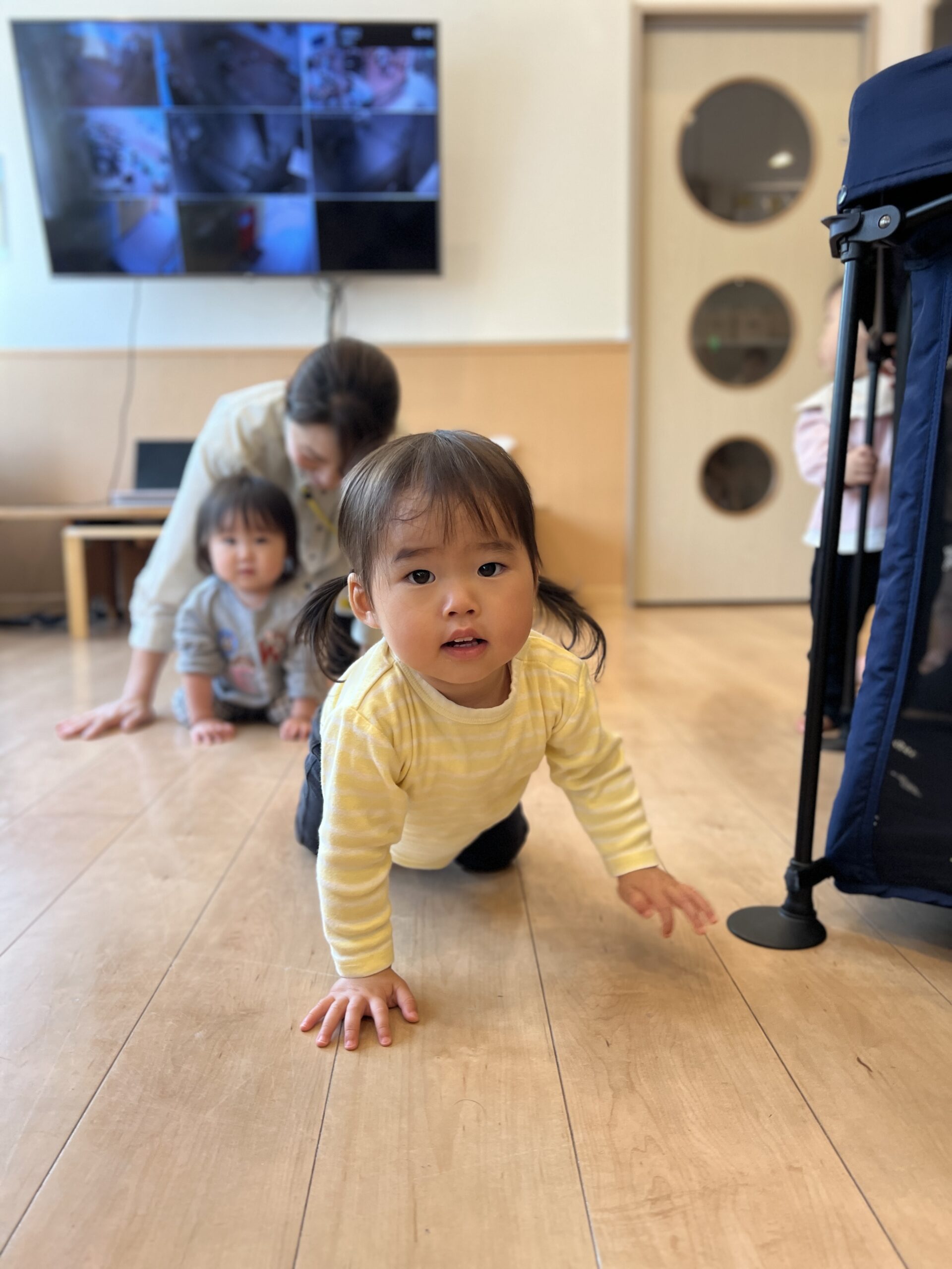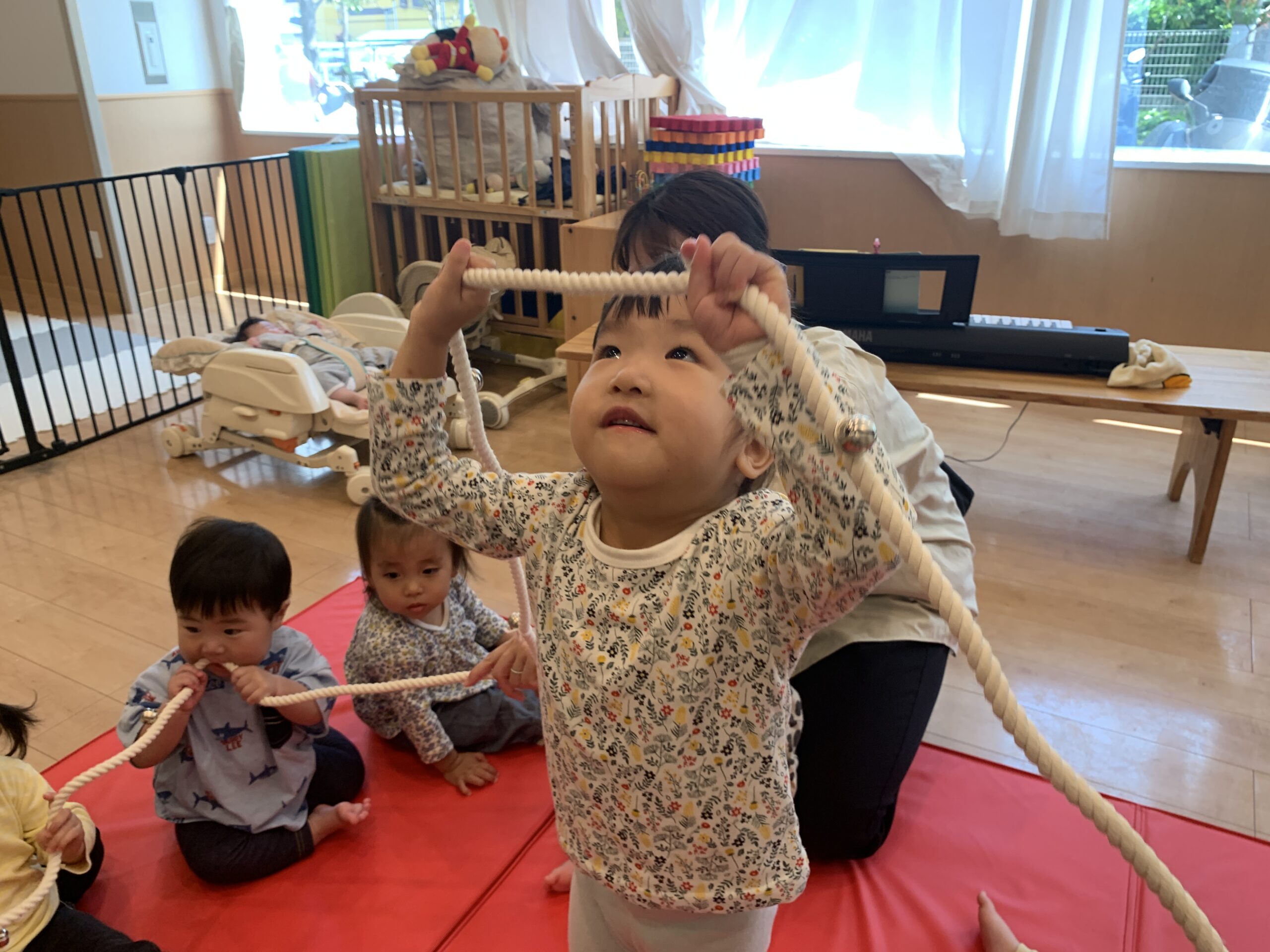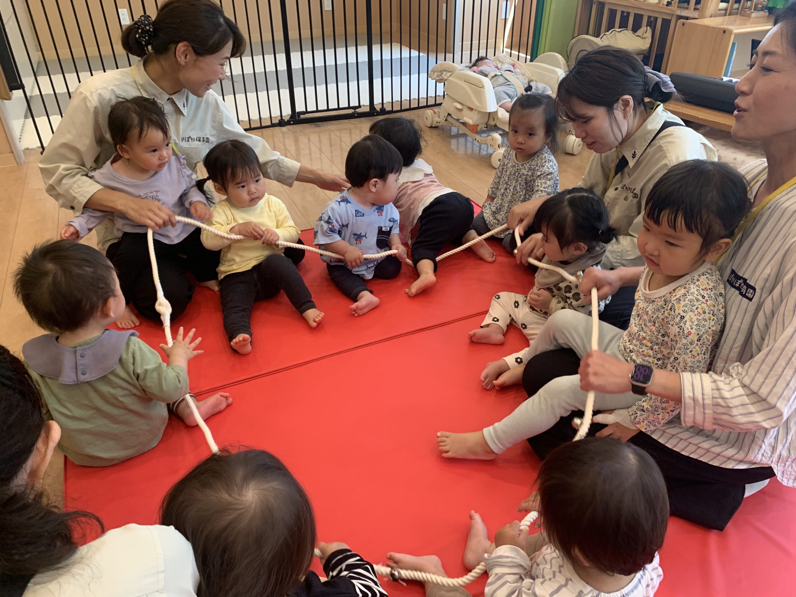 音楽あそびが終わるころには、バイバイやハイタッチしてくれるなど、すぐに慣れてくれていました!