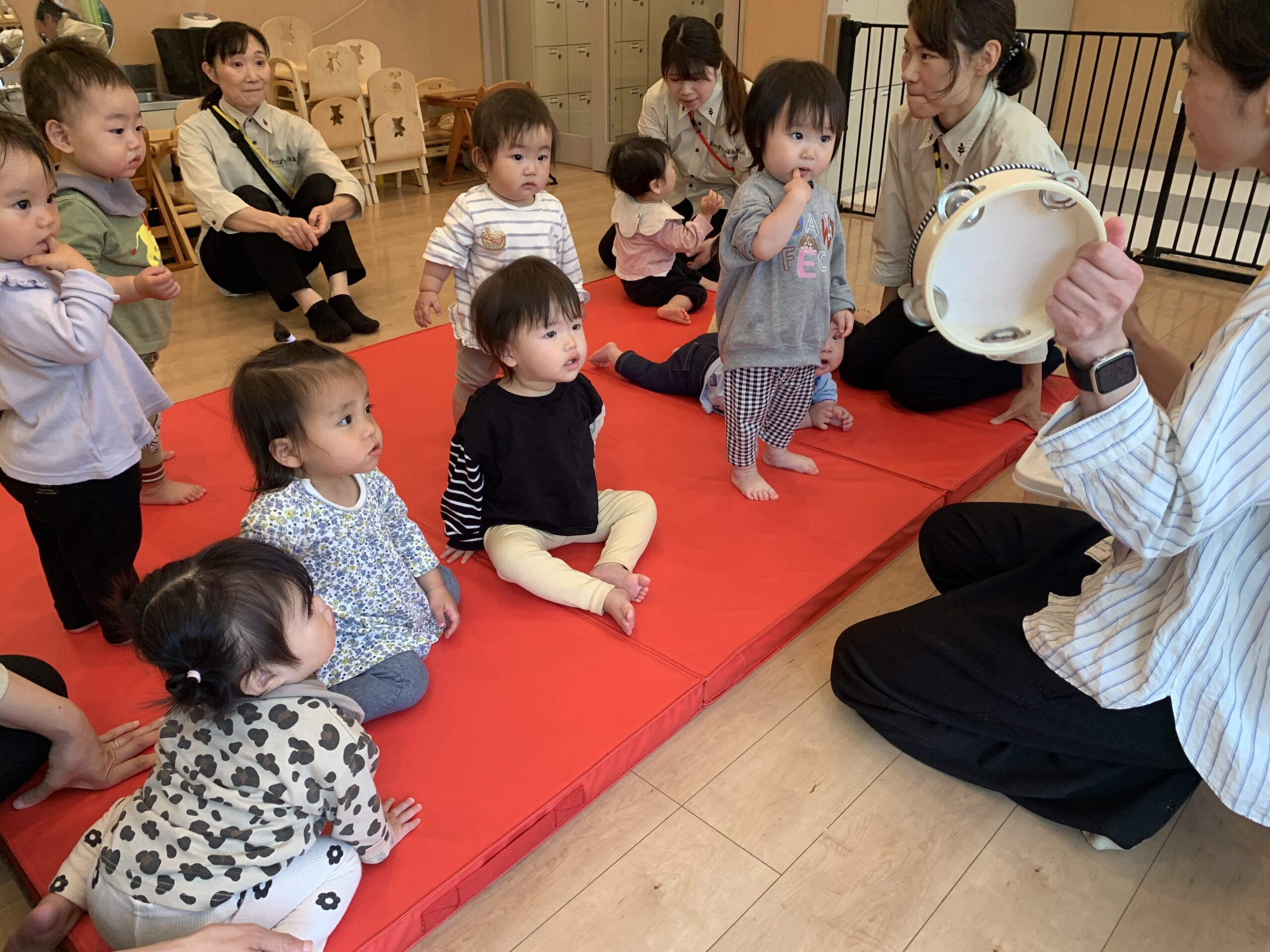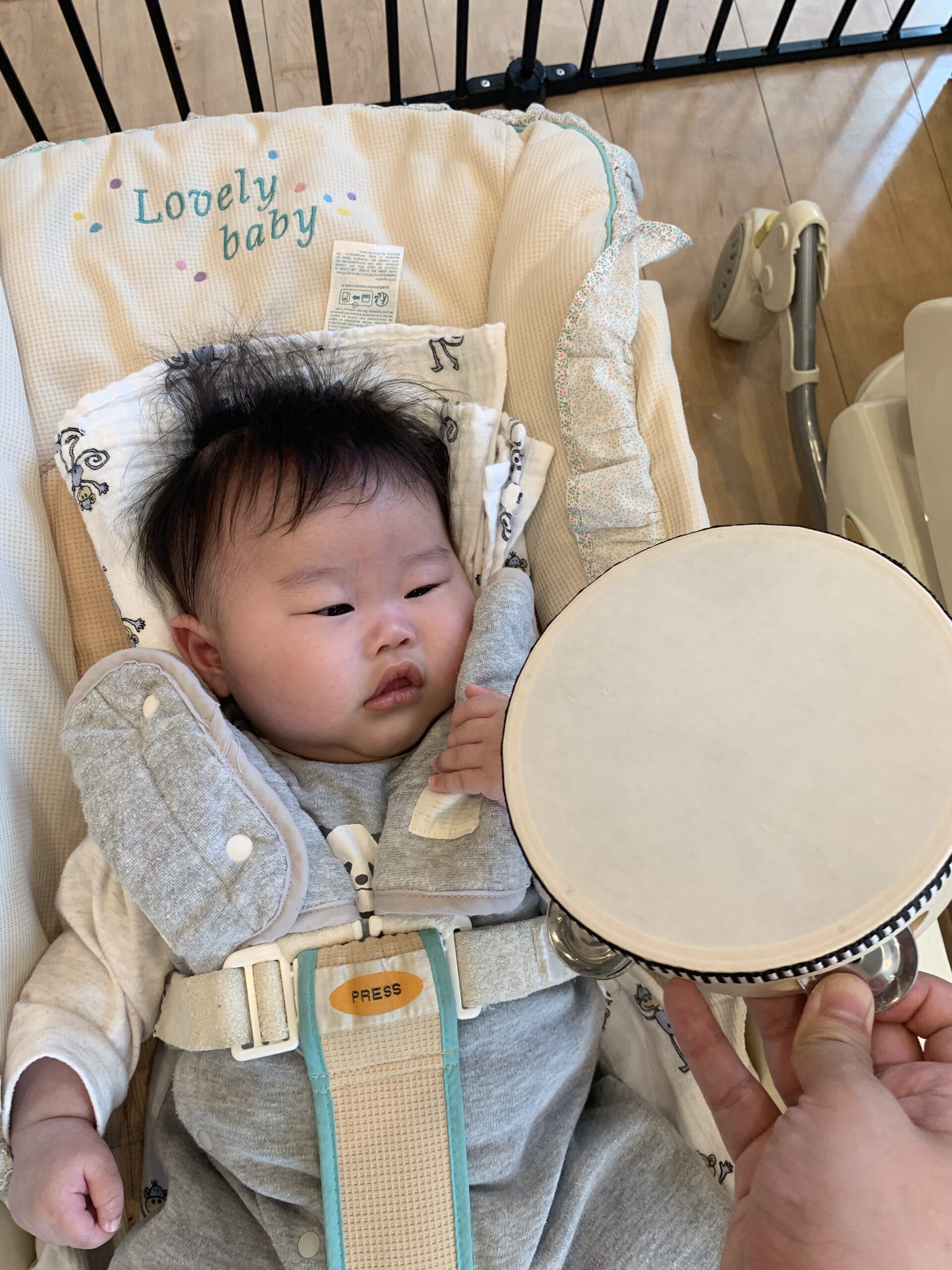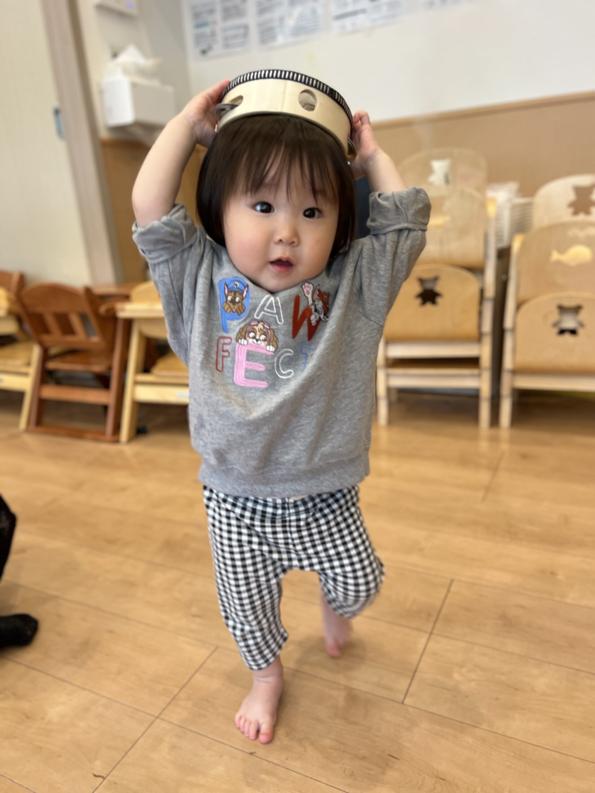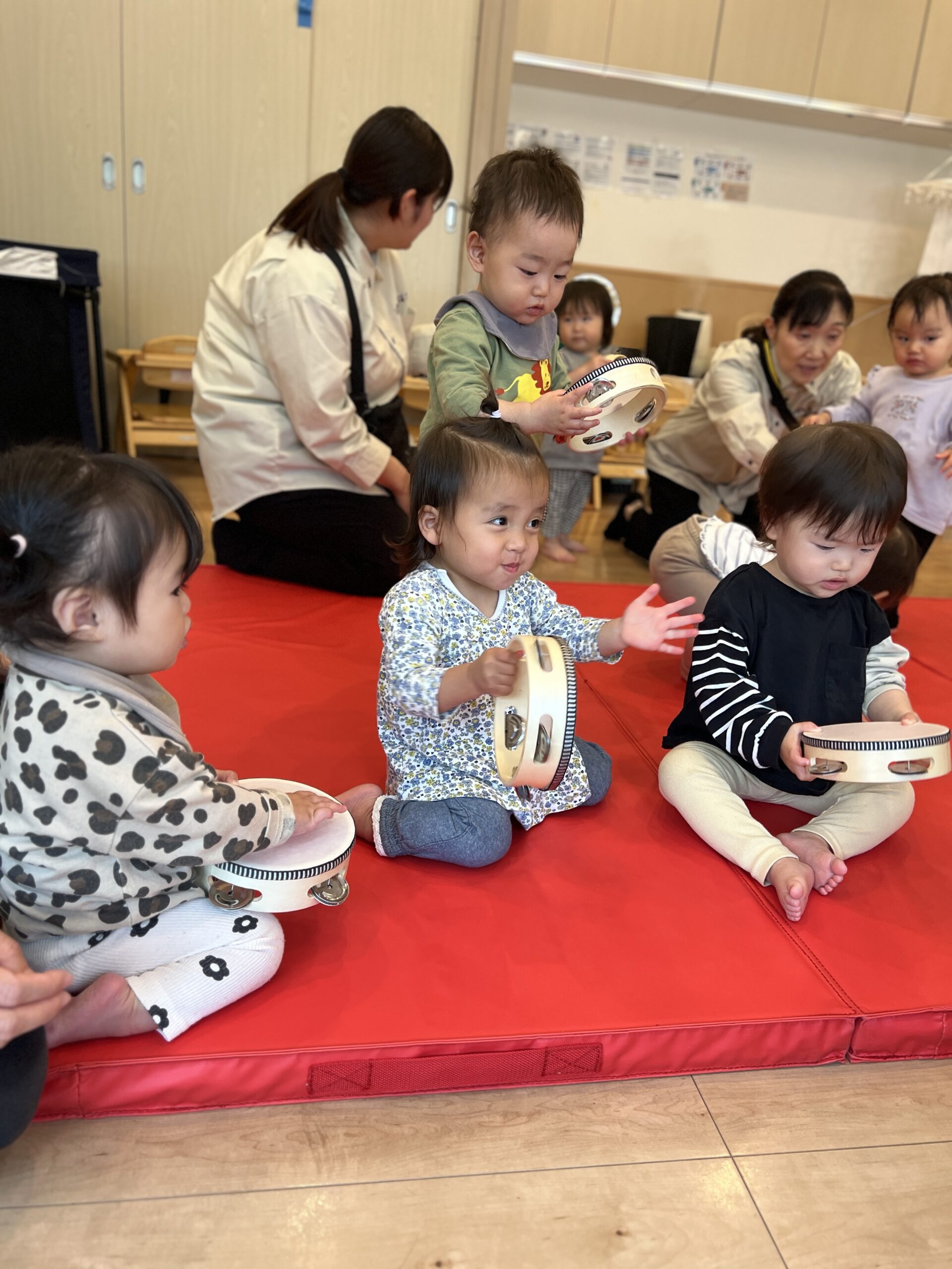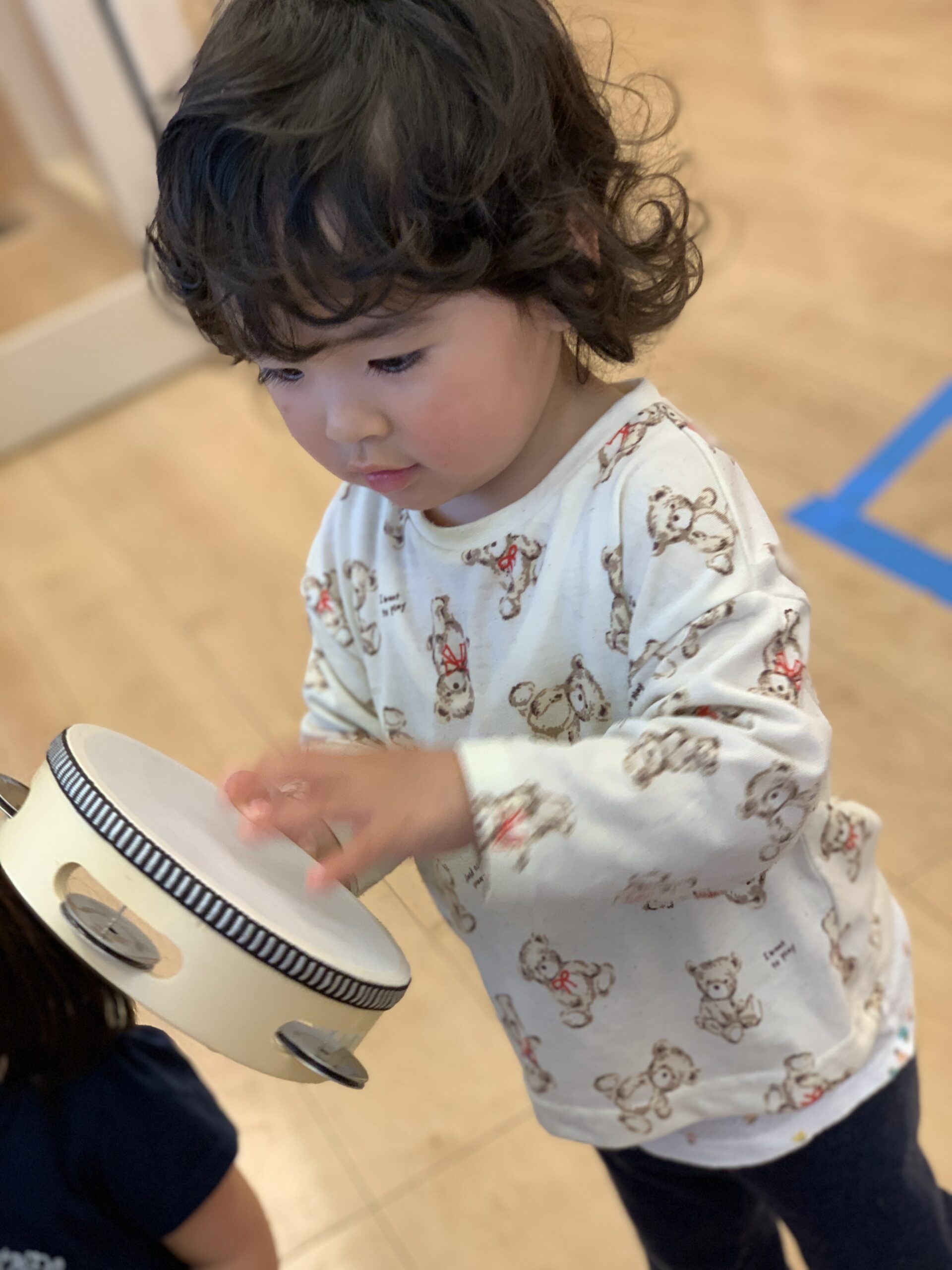 口に入れて確かめていたり、それぞれの楽しみ方でタンバリンと触れ合う時間となりました。