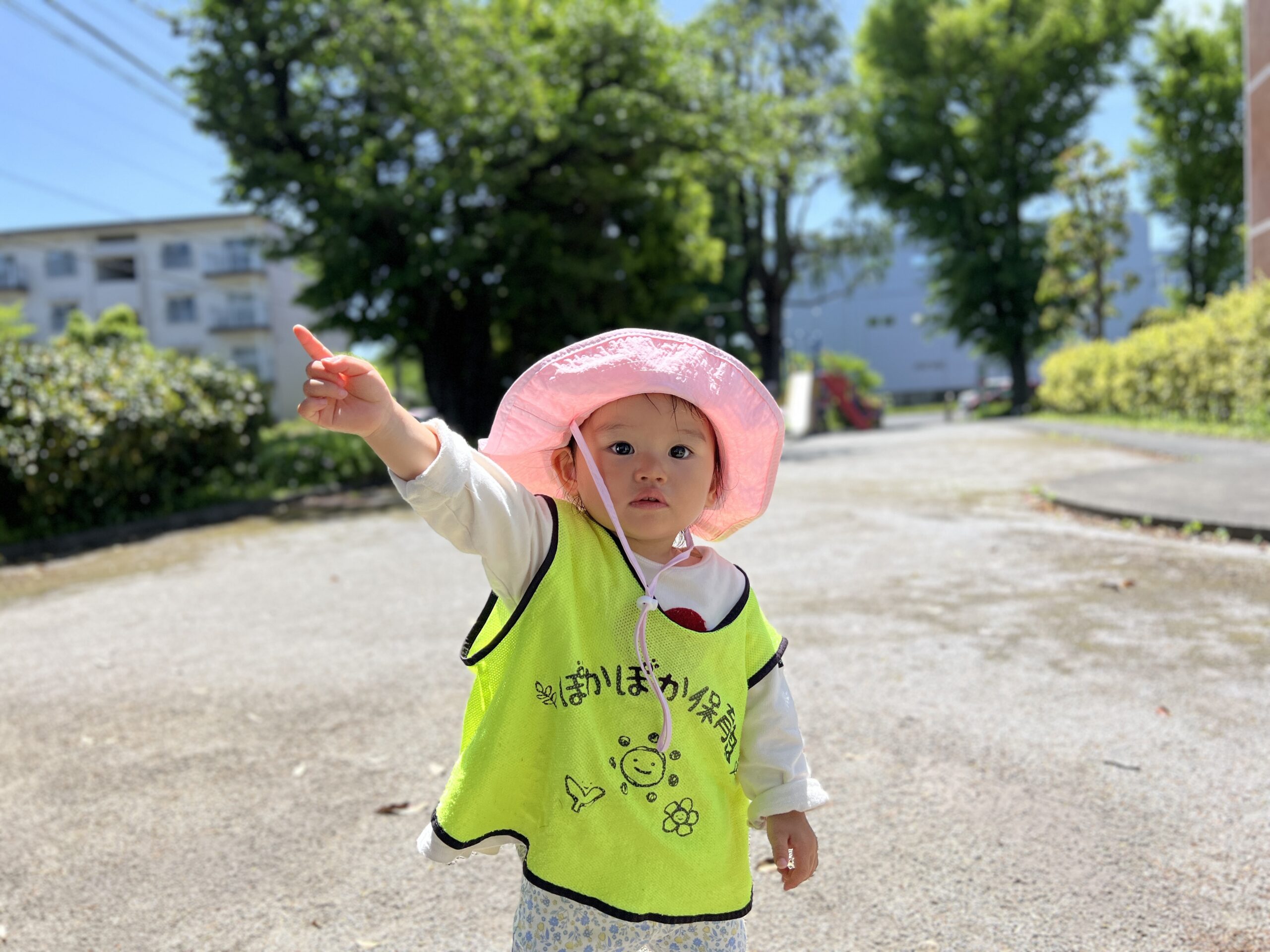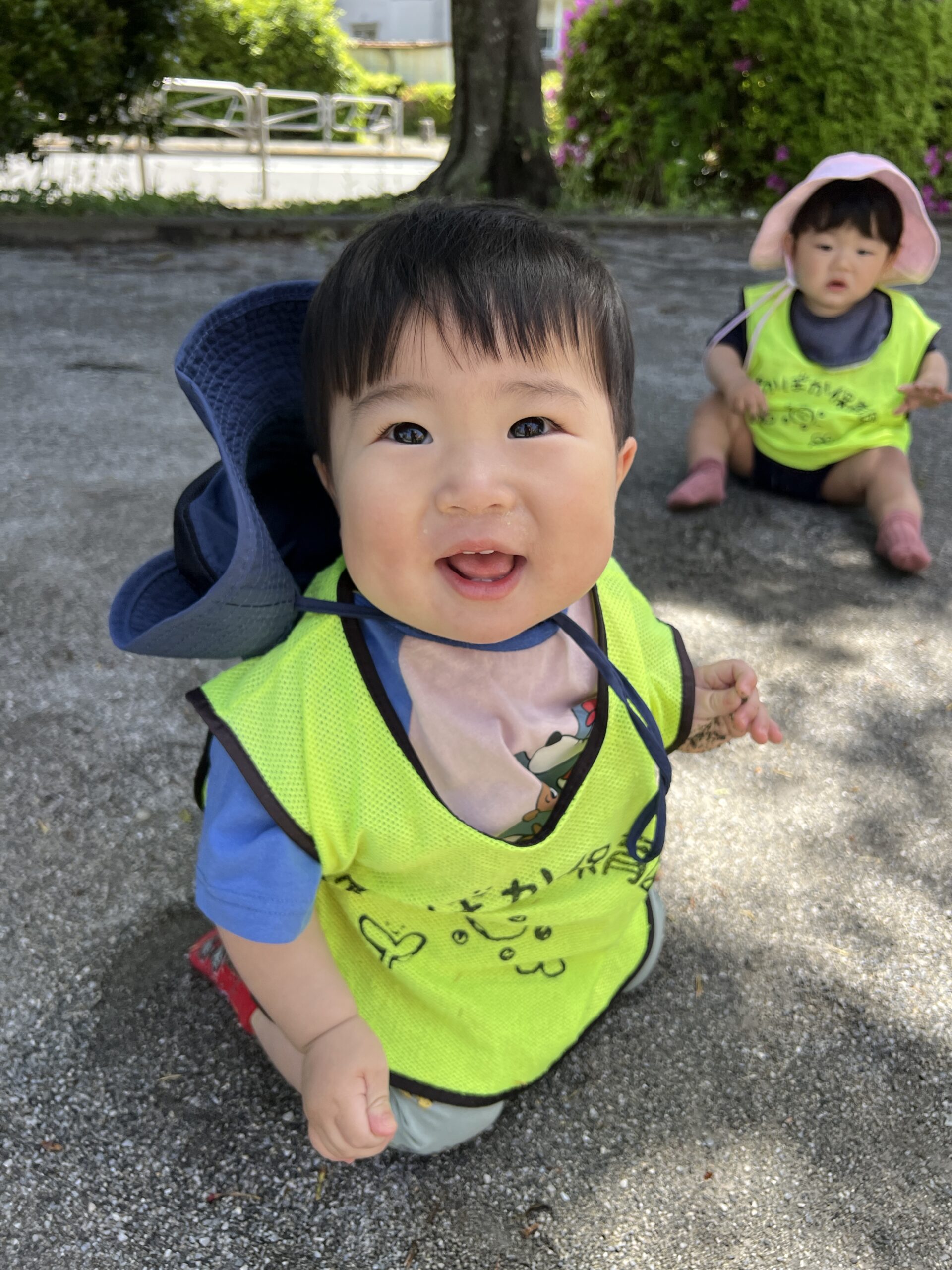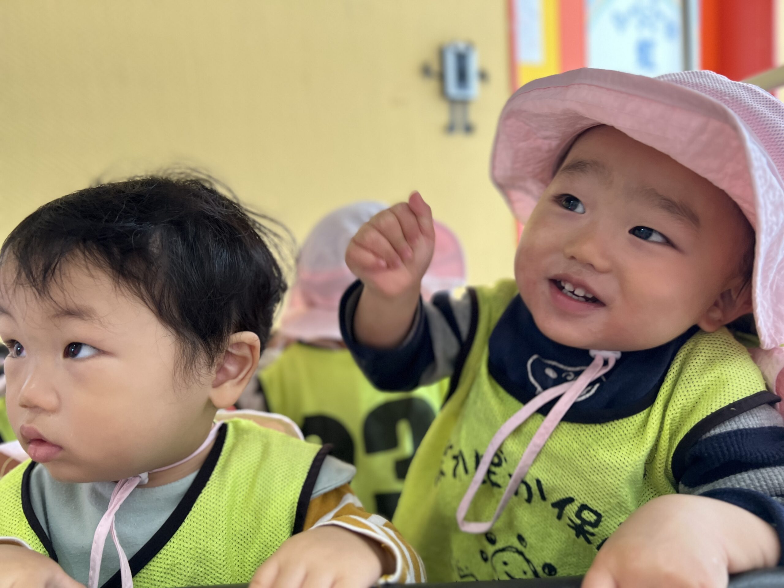 朝から青空が広がり、絶好の公園日和。0歳児と1歳児は、いつもより少し遠くの公園へカートに乗って出発しました。