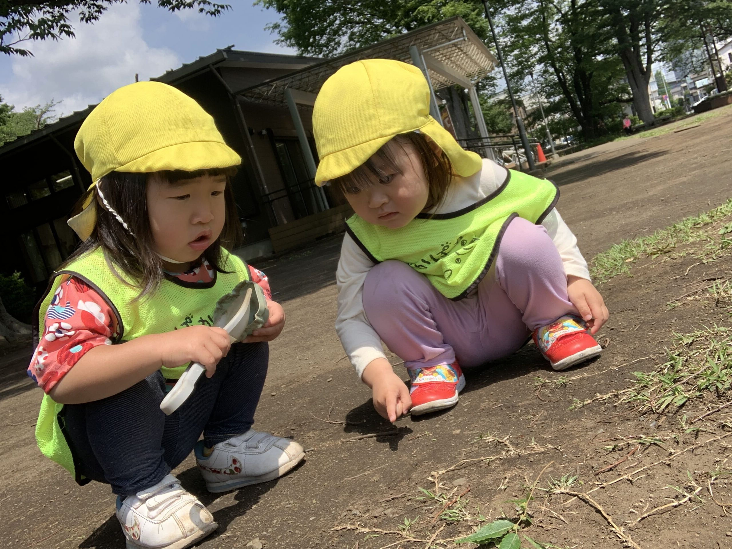 また、アリを見つけた子どもたちは、「ちいさいね」「どこいくのかな?」と興味津々。自然とのふれあいを通じて、好奇心や観察力が育まれているのを感じました。