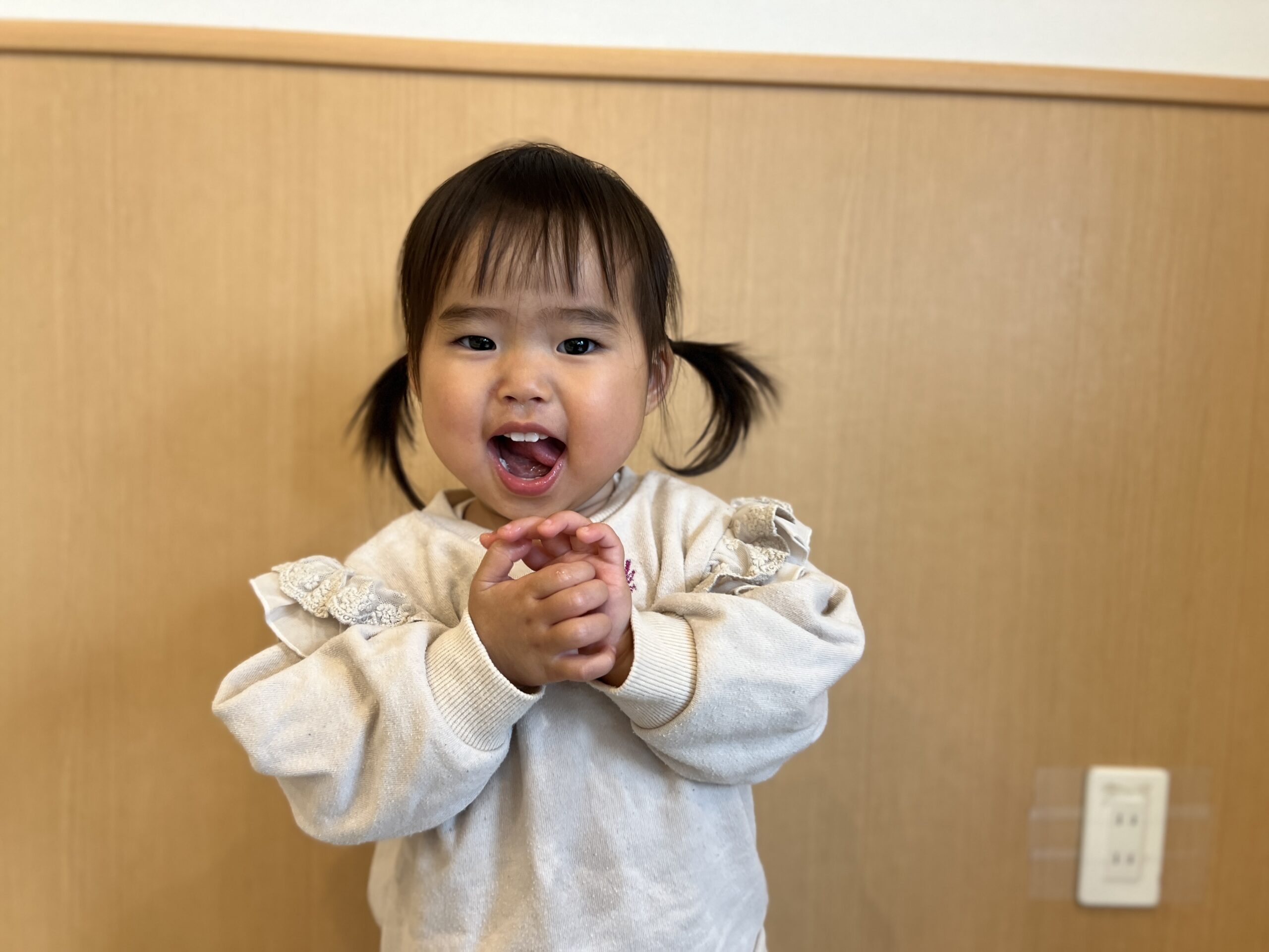 0歳児も先生の声かけに合わせて