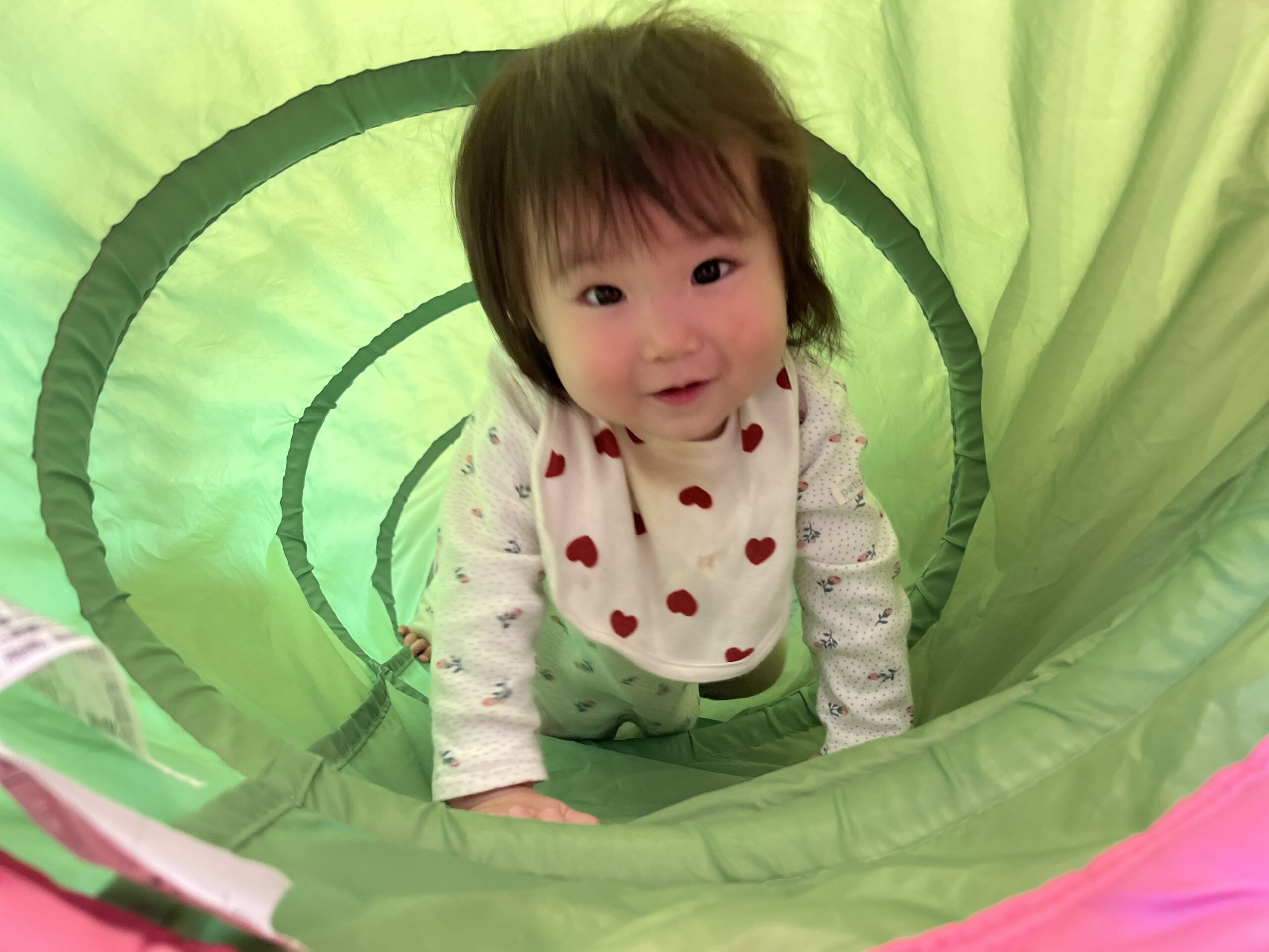 狭いトンネルの中をハイハイで進みます。