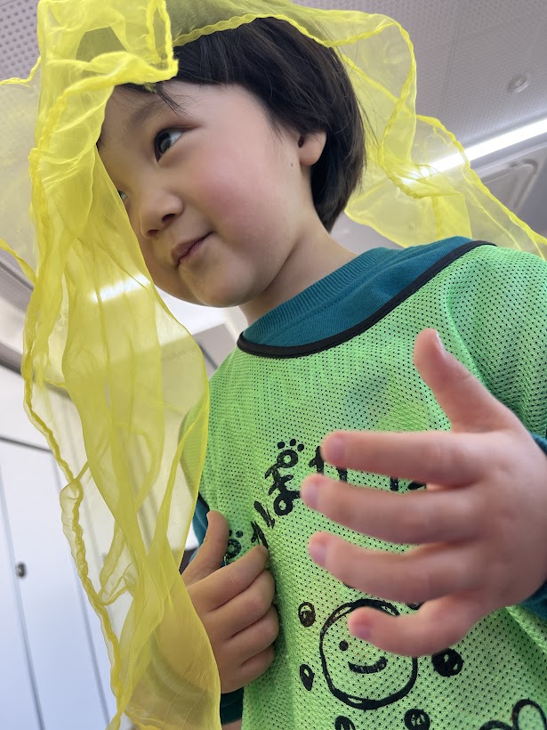 「せーの!」の合図でスカーフを投げて大喜びの可愛らしい姿も見せてくれました!
