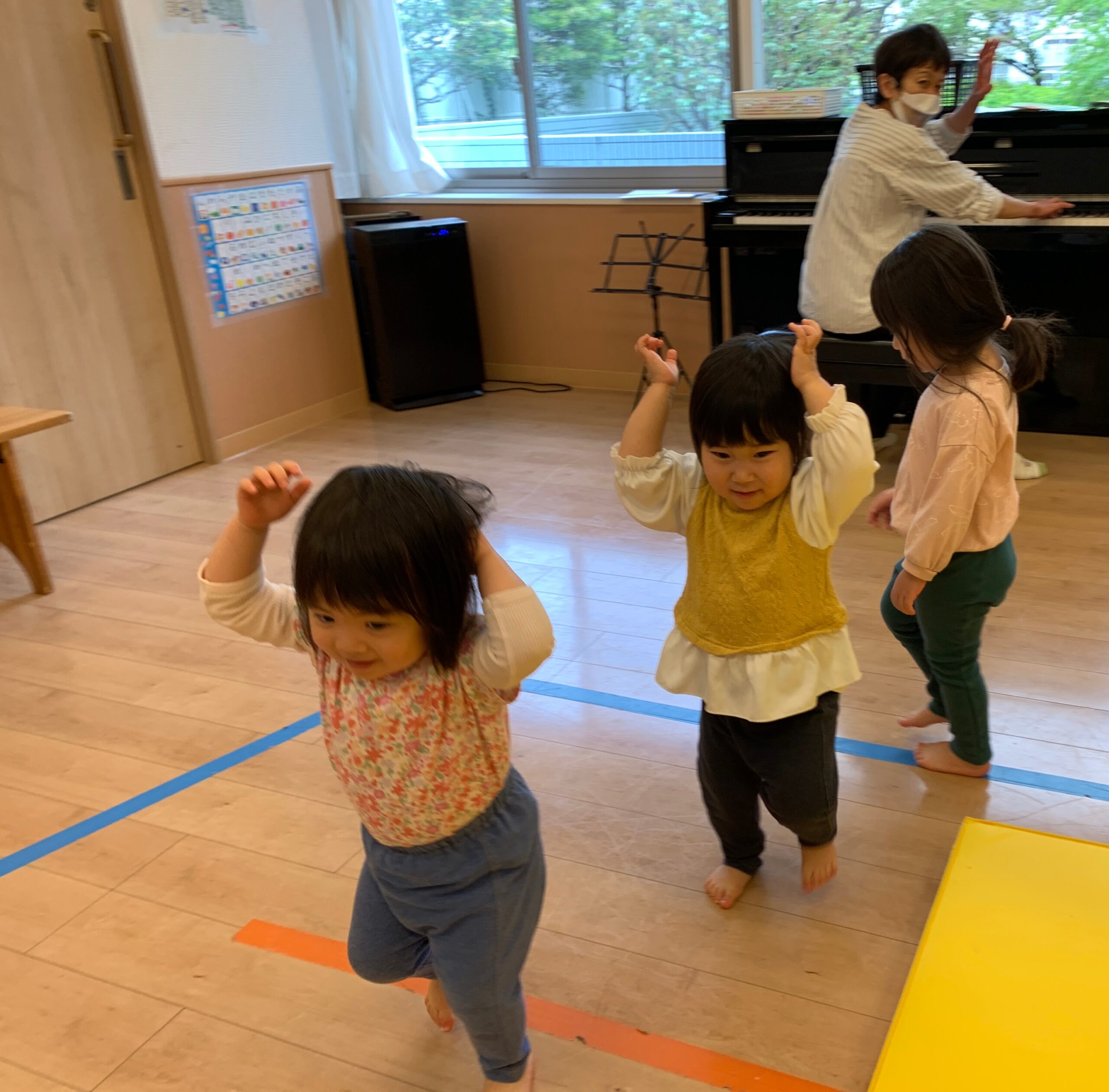 リトミックは、うさぎのジャンプやありにぞう、即時反応の力がぐんぐんついています。
