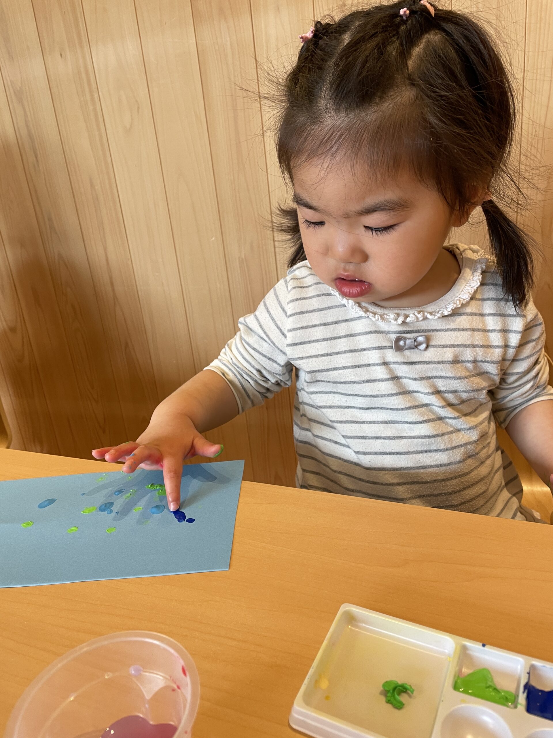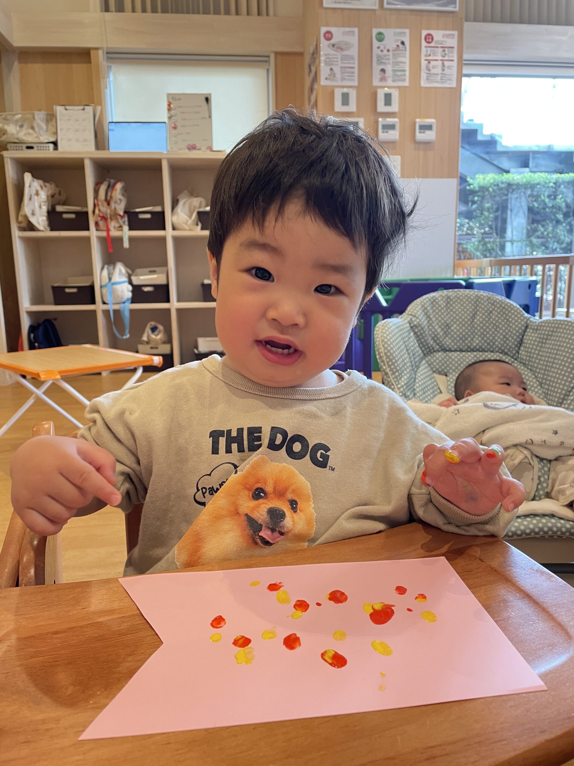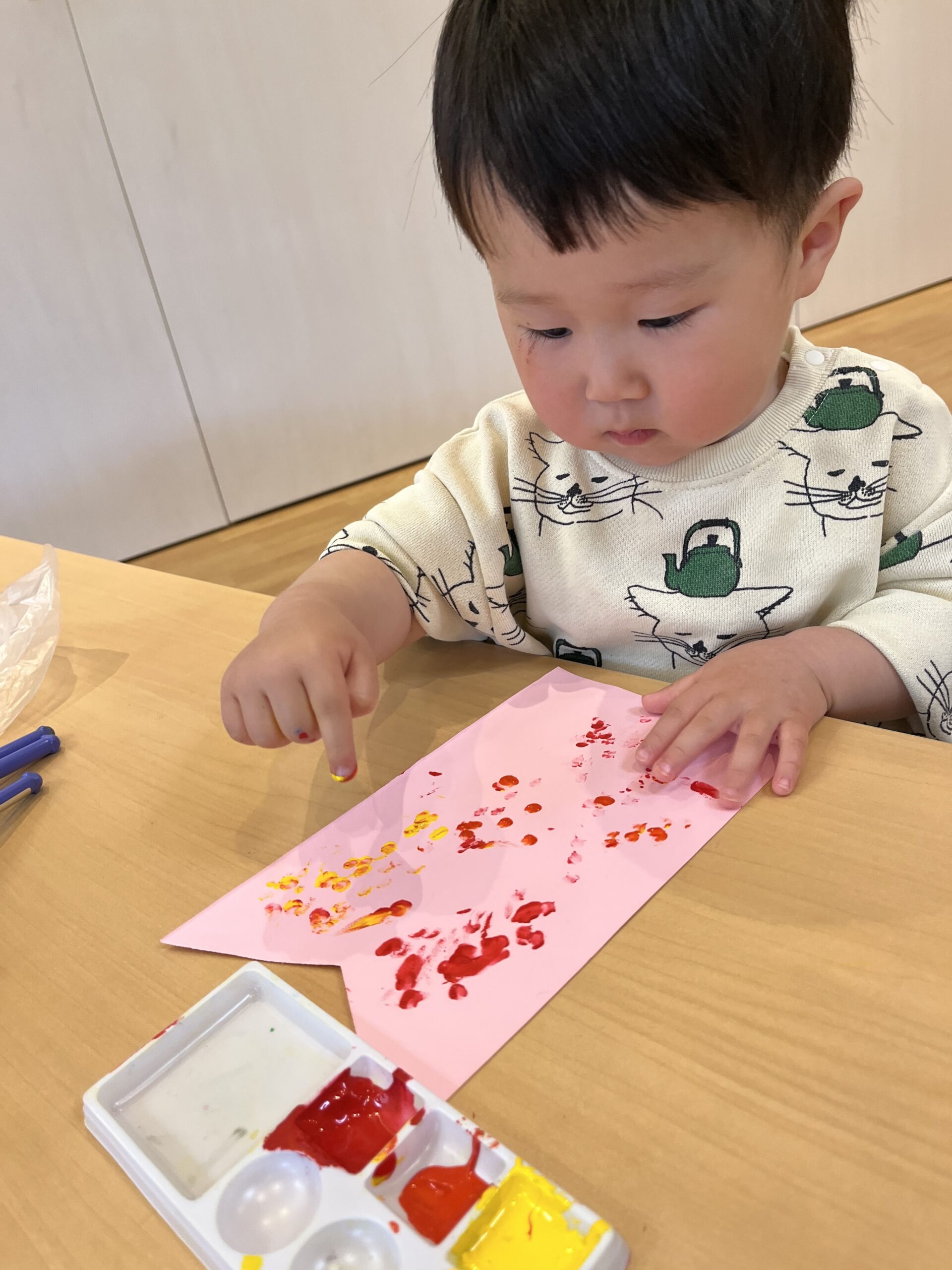 1歳児:絵の具の感触を味わいながら自分で彩ることを楽しむ