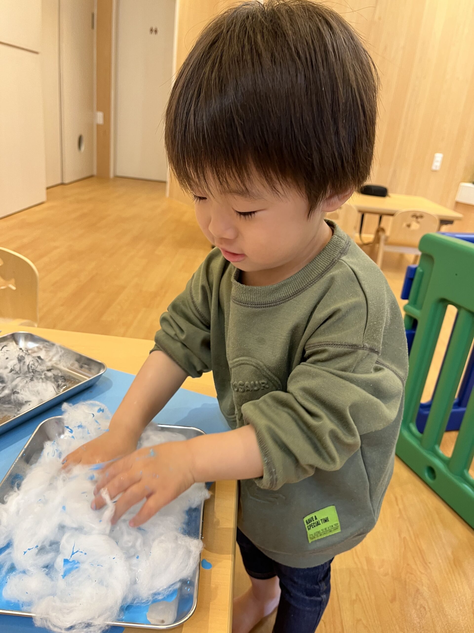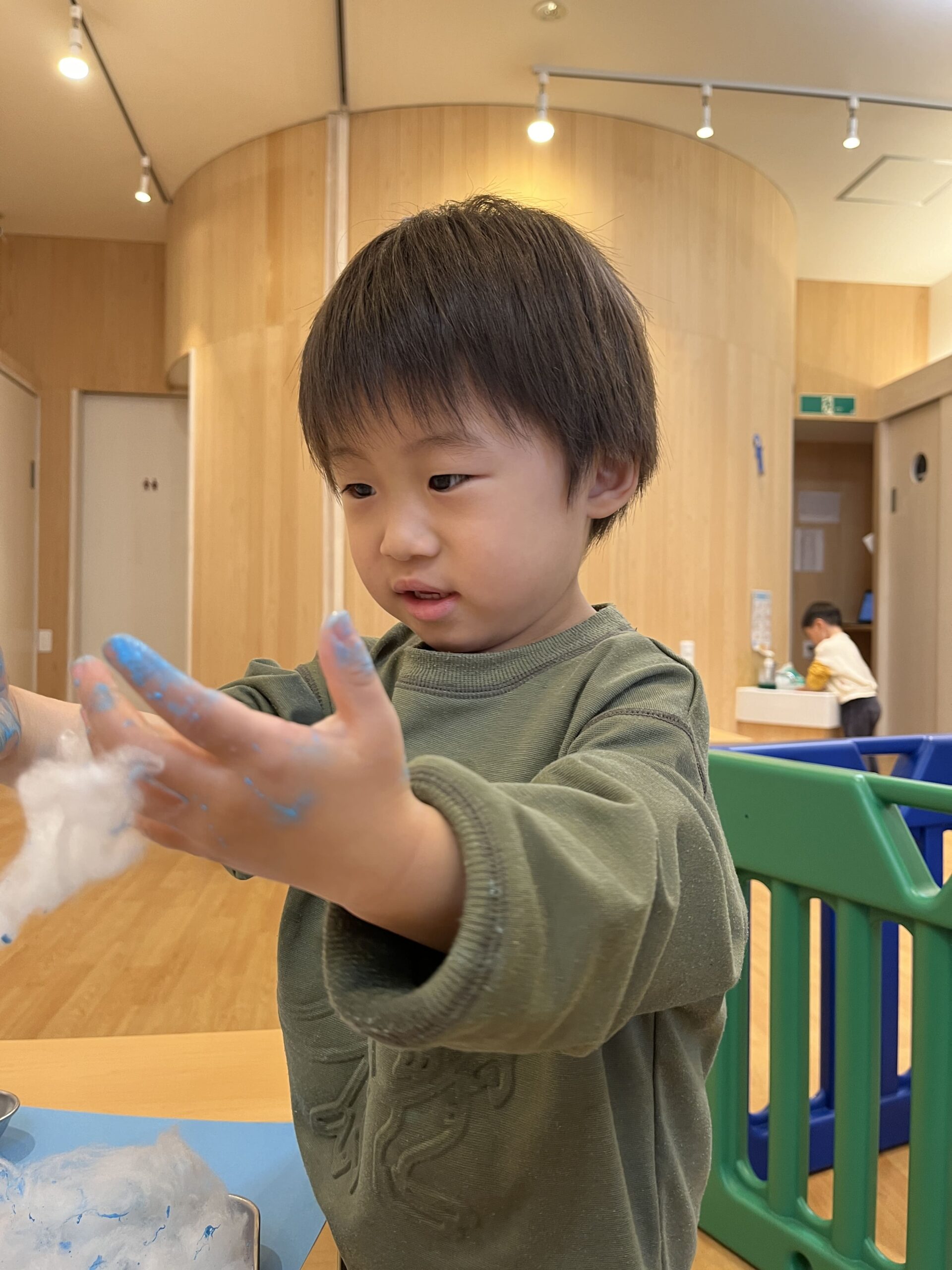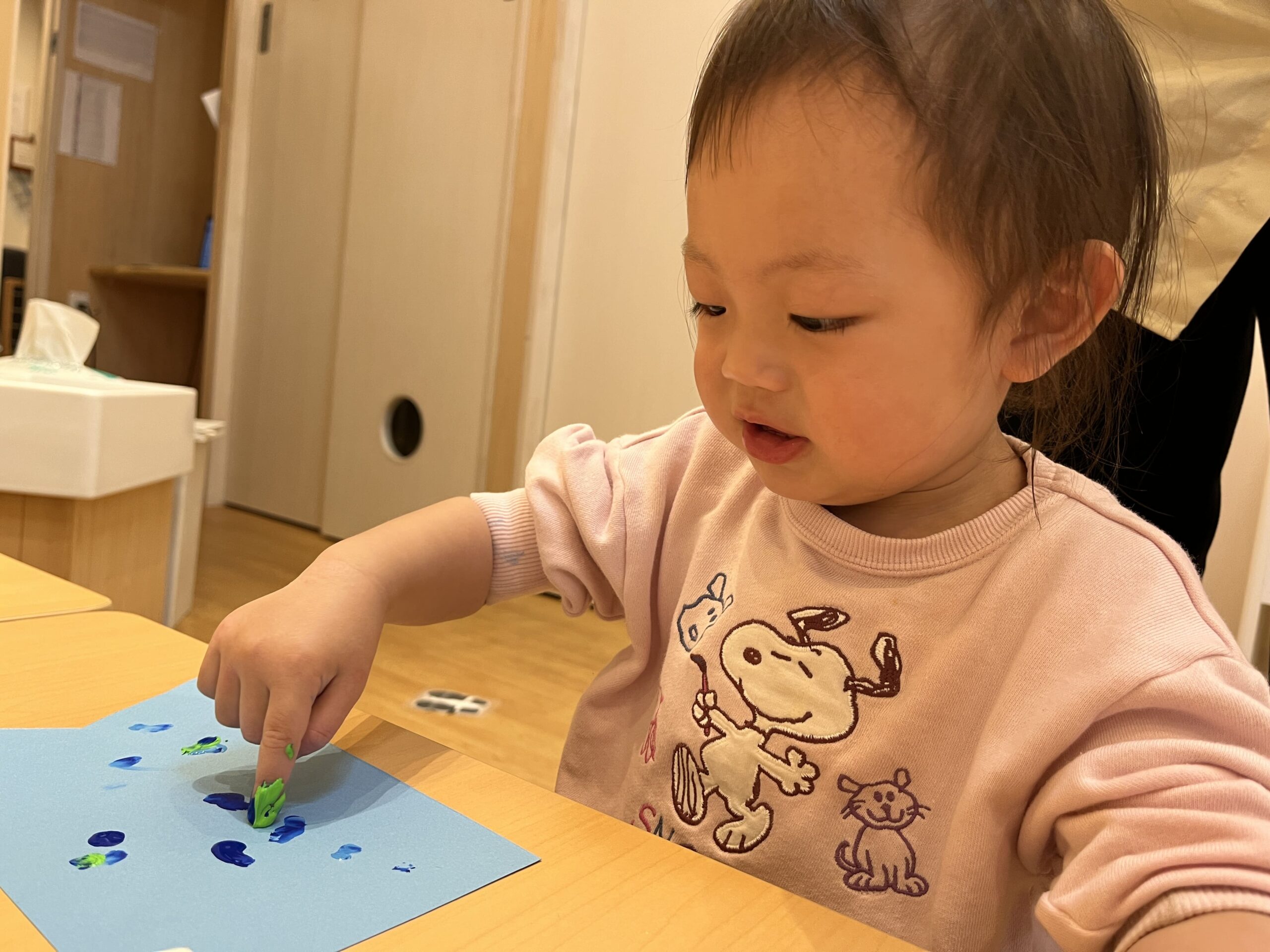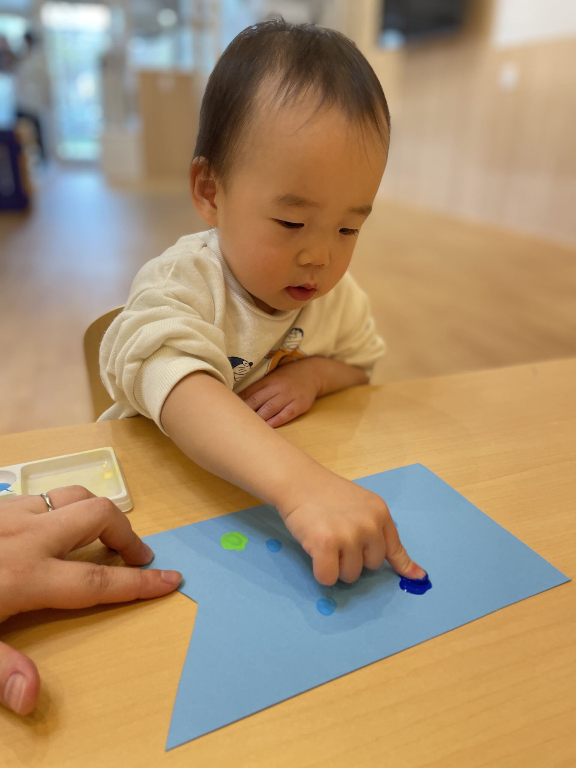 1歳児:絵の具の感触を味わいながら自分で彩ることを楽しむ