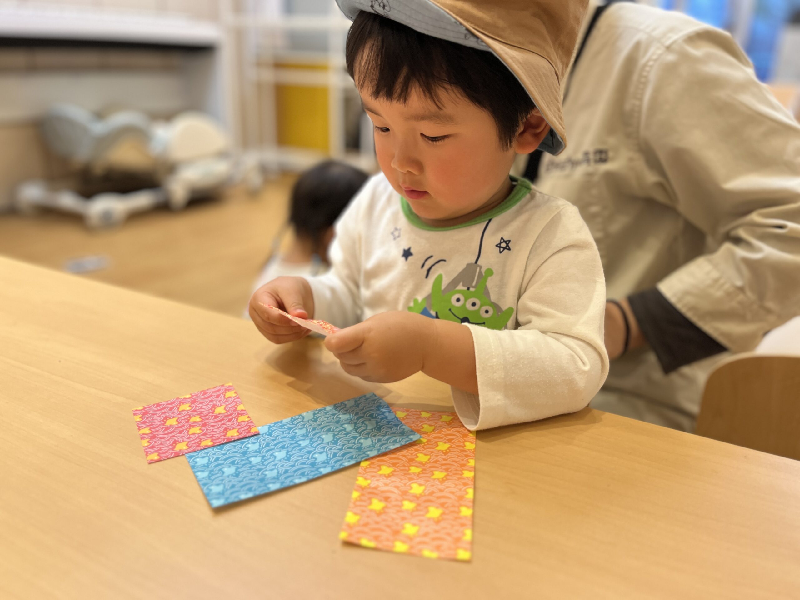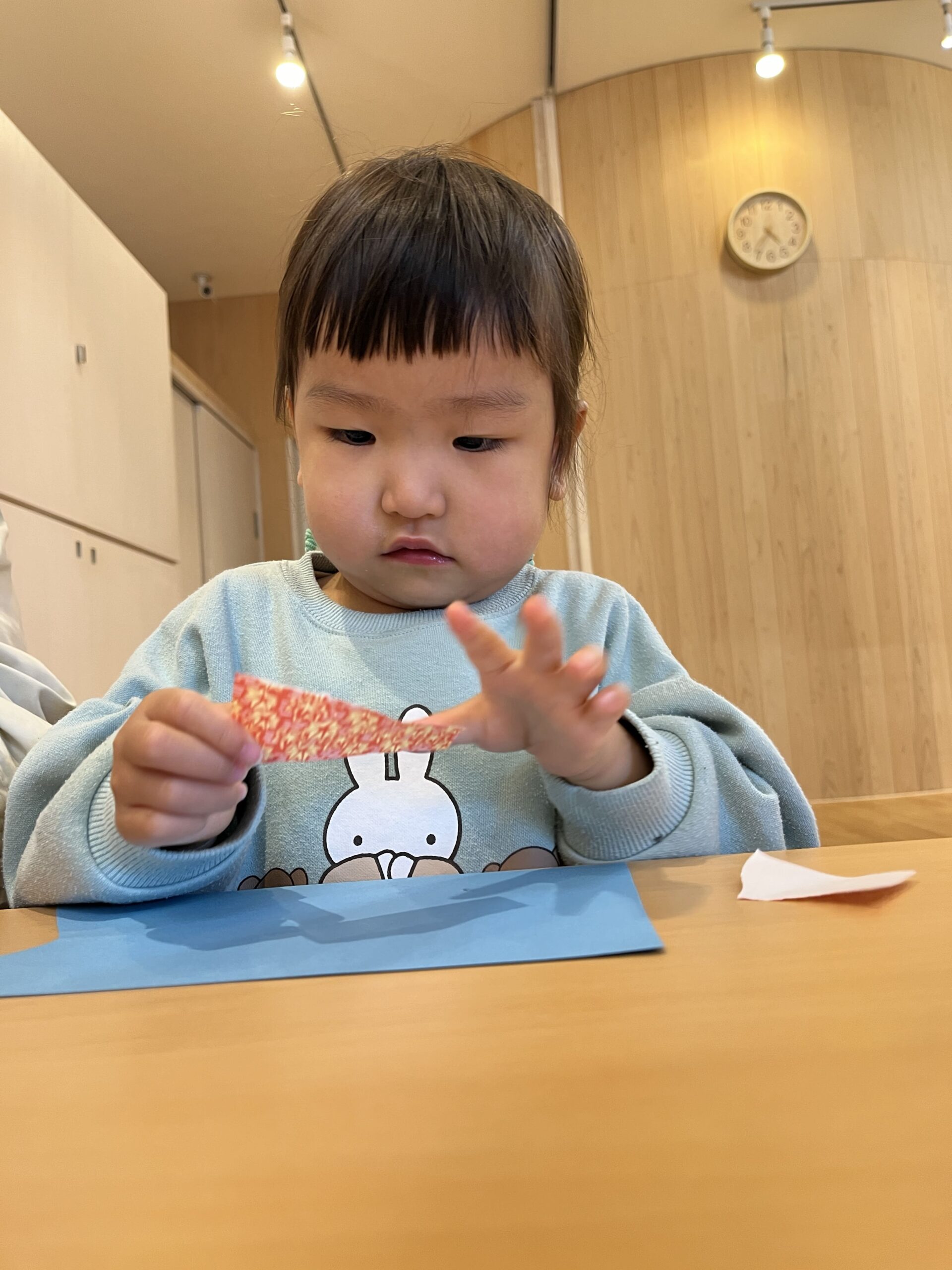 2歳児:ちぎる、貼る工程を楽しみながら指先の器用さを養う