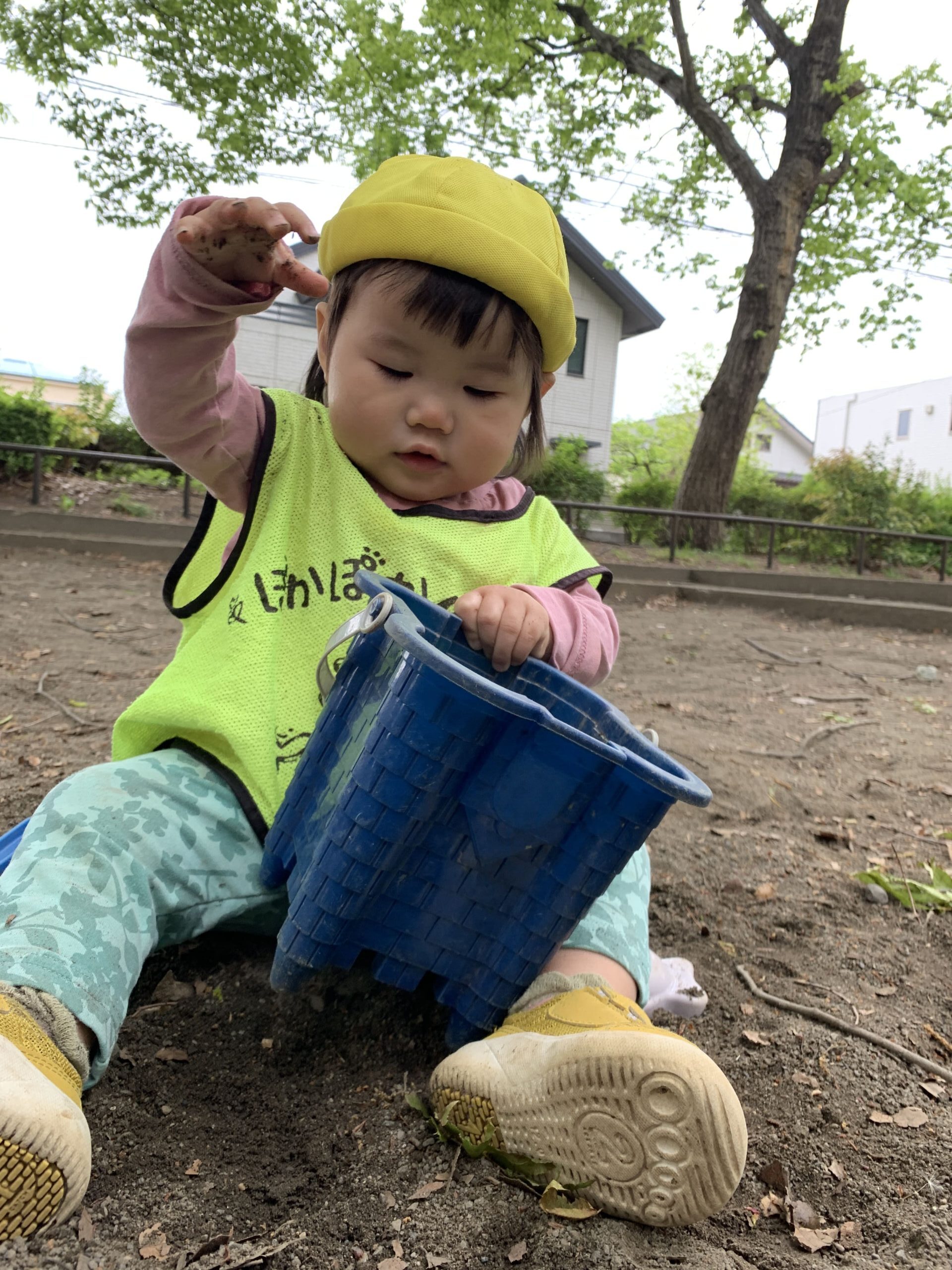 「先生も一緒に!」と手を差し伸べてくれたので、先生も一緒にお砂を触りながら、お友だちの作るお山を見守りました。どんどん大きくなっていく砂のお山に、みんなで歓声をあげていました☆