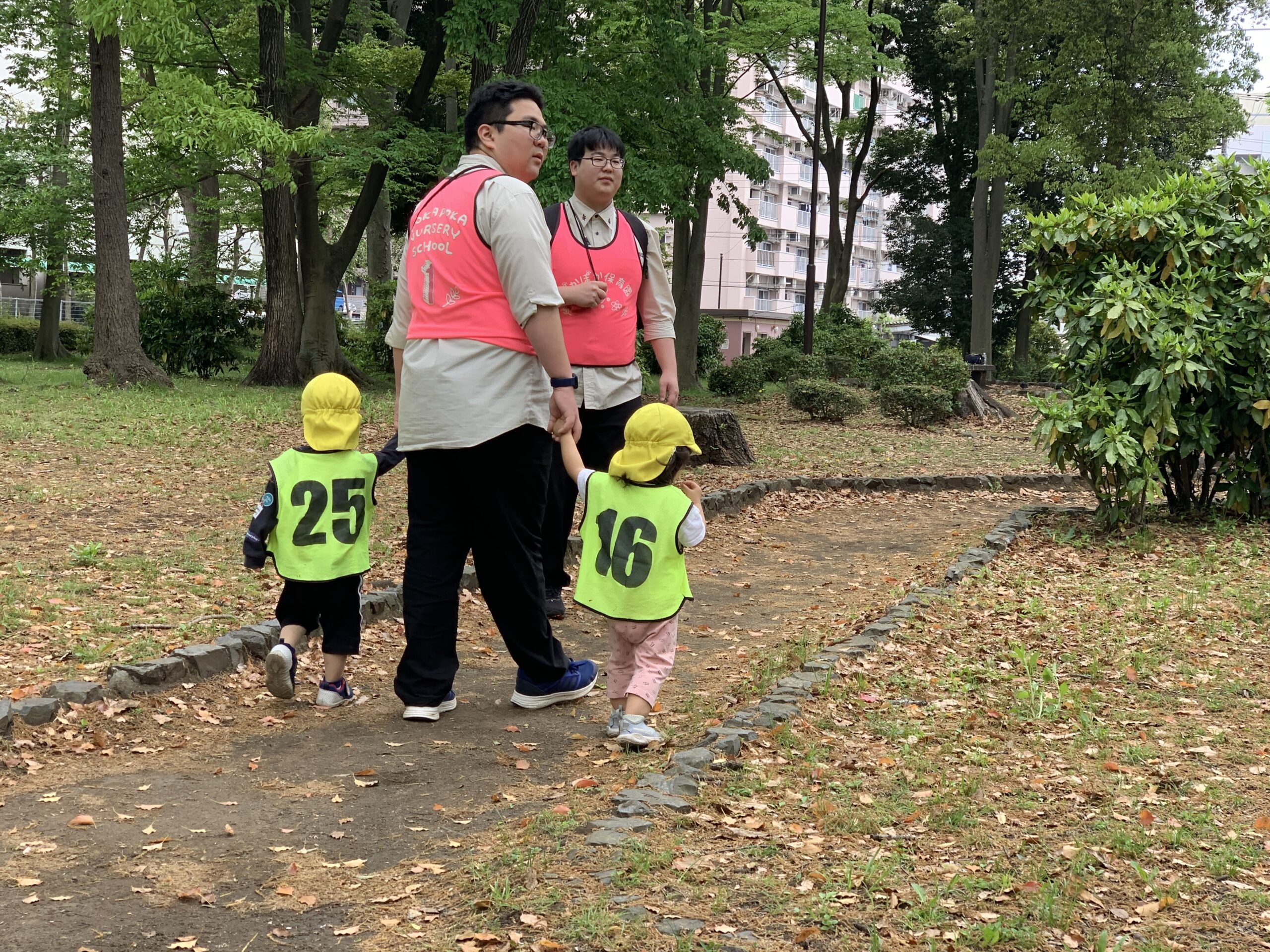 今日は曇り空の下でしたが、子どもたちは元気に公園で遊び、たくさんの笑顔と発見を楽しみました。自然と触れ合う中で、色々なものに興味を持ち、友達と一緒に遊ぶことで成長している様子が見られました。
