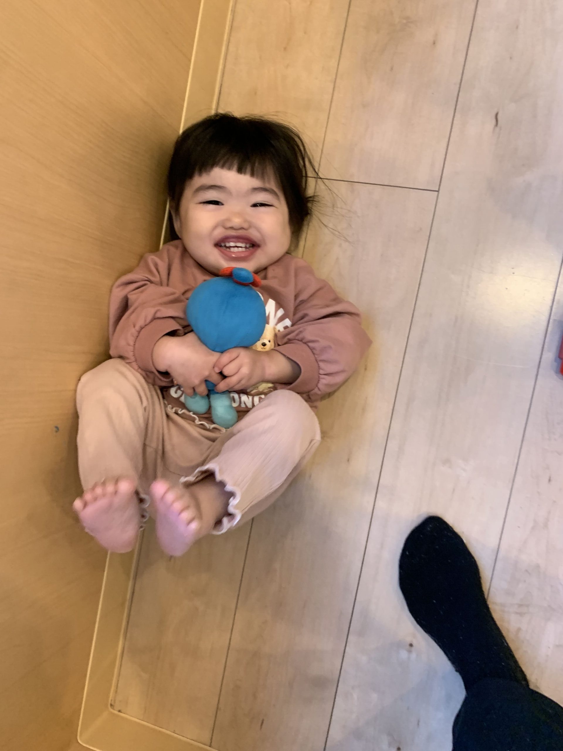 「やったね!すごい!」と先生が拍手すると、嬉しそうな表情を見せてくれました!