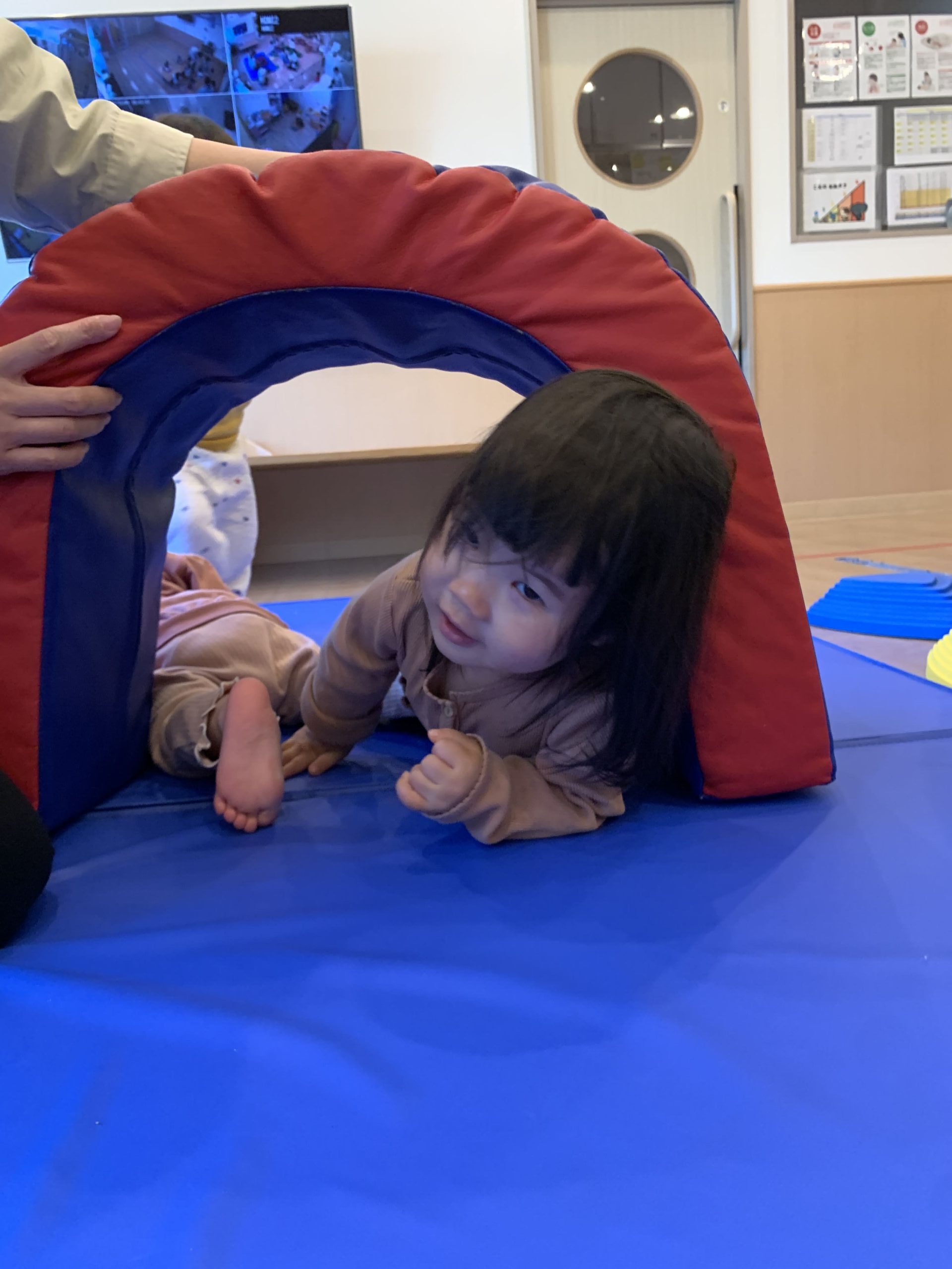 子どもたちは、ふかふかのマットの上で、よちよちと歩いたり、ハイハイで進んだり!