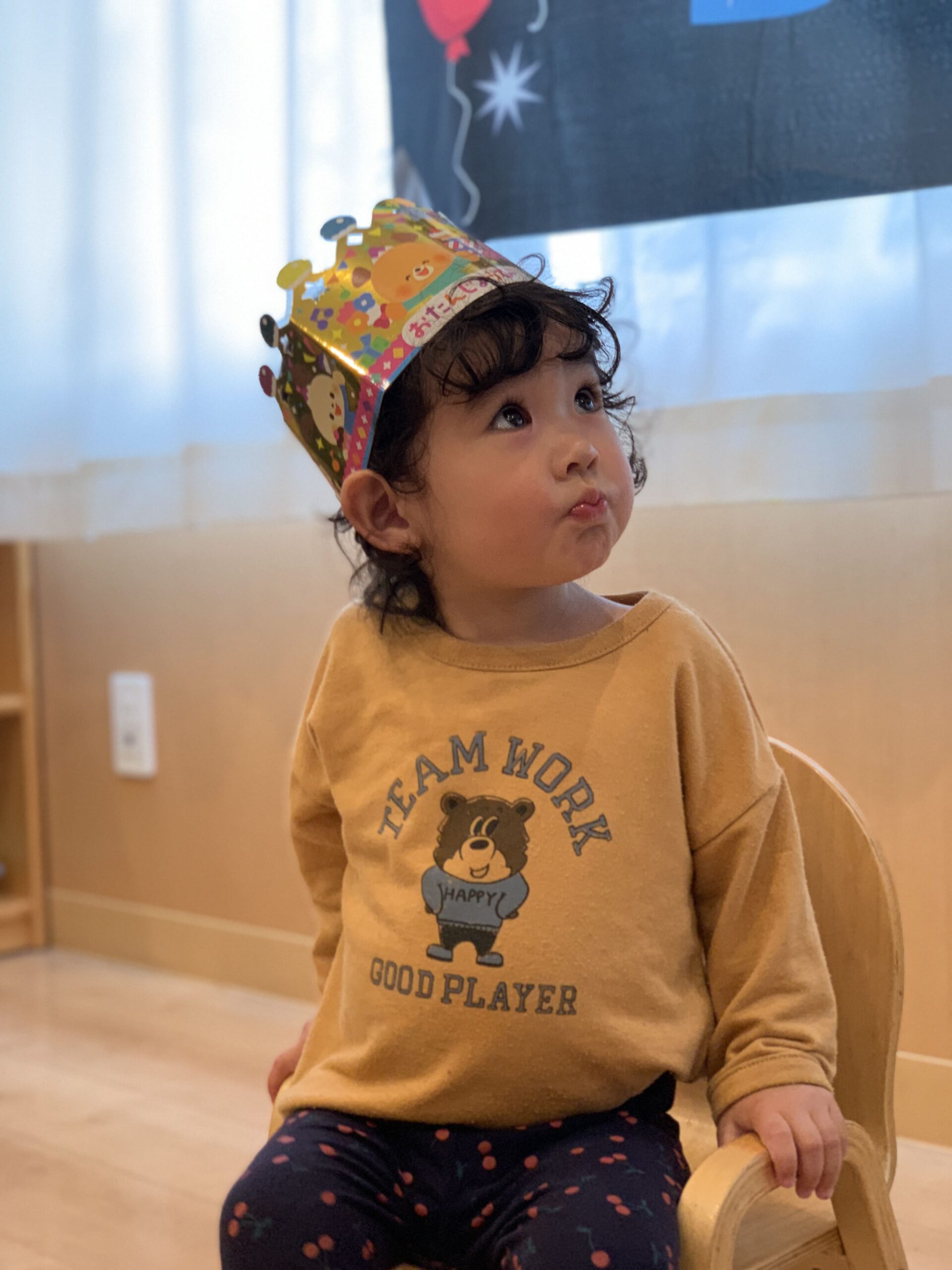 今日は4月生まれのお友だちをお祝いするお誕生日会を行いました。保育室には、子どもたちの明るい笑顔と「ハッピーバースデー」の歌声が響いて、温かい空気に包まれました。