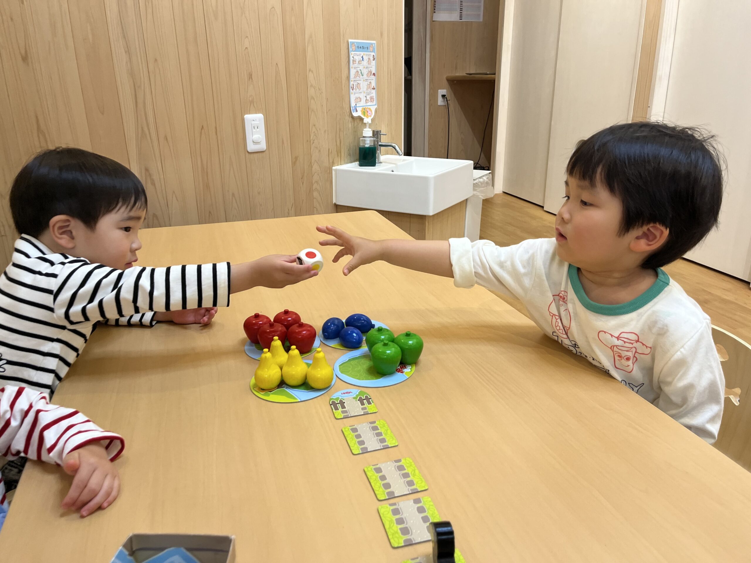お友だちに「はい!どうぞ!」と優しく手渡す姿 さすが2歳児さんです!!
