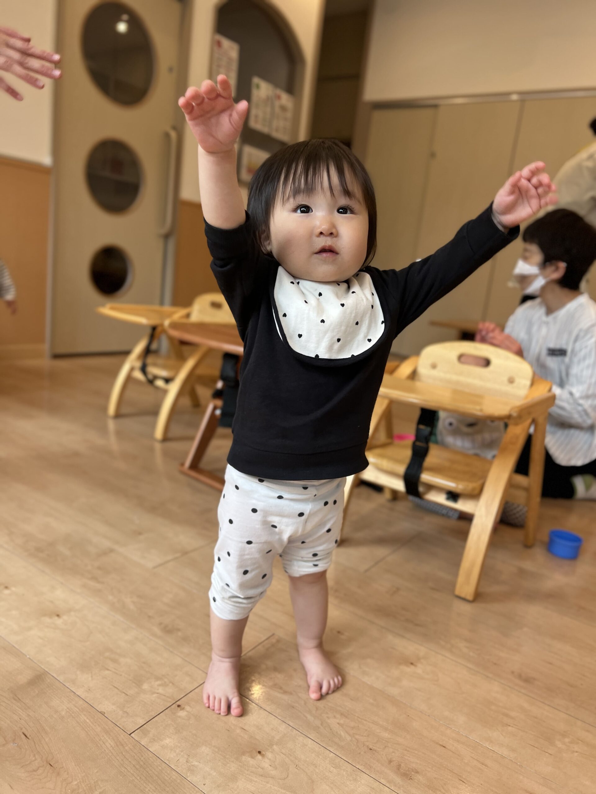 今月のお歌「ぶんぶんぶん」をみんなで歌うときの姿もとっても可愛らしかったです。手をふりふりしながら歌う子どもたちの笑顔が、まるで春風のように温かくて、心がほっこりしました♪