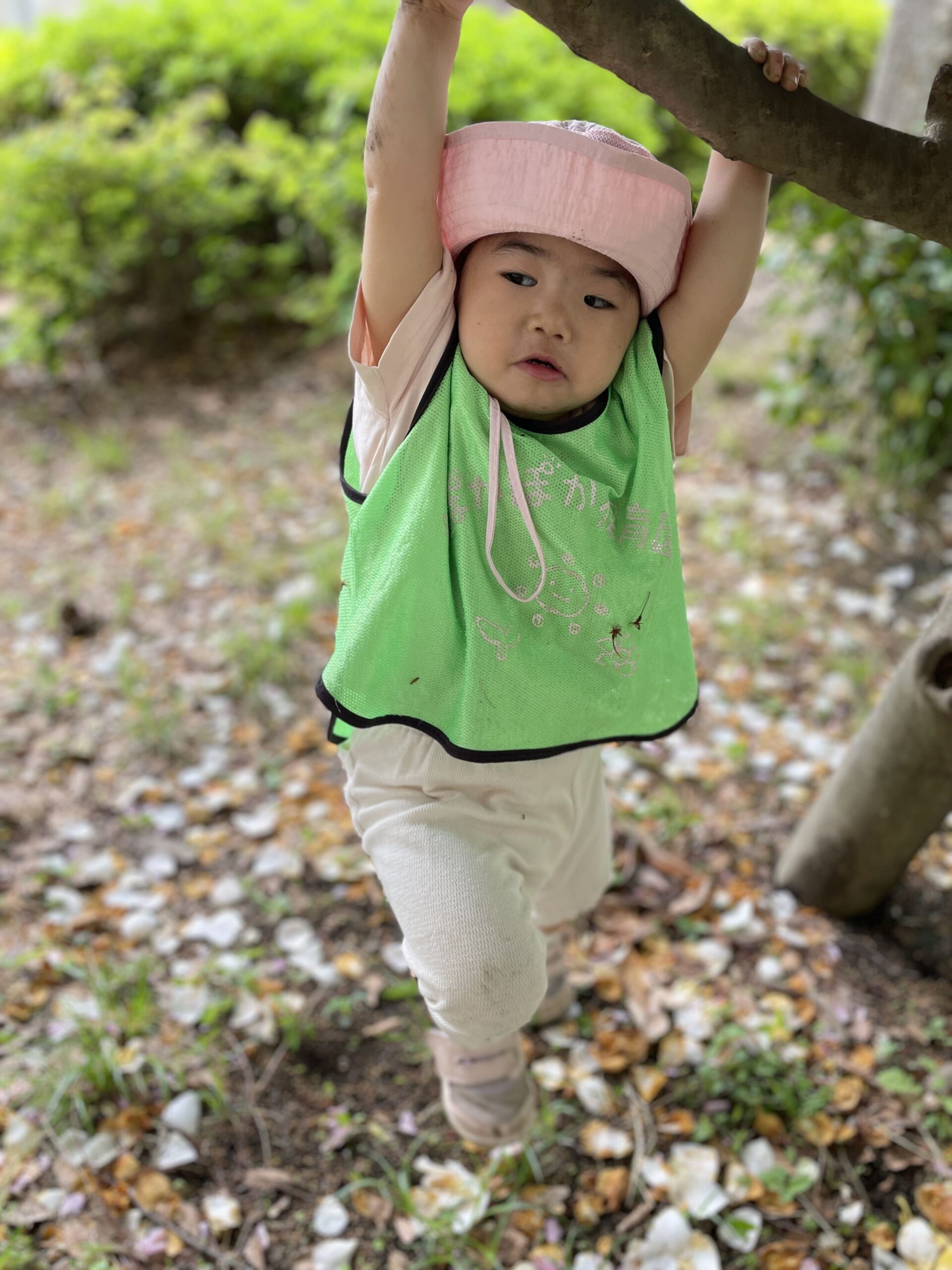 また、木の鉄棒にも挑戦しようとする姿が見られ、小さなチャレンジに拍手を送りたくなるような一日でした。